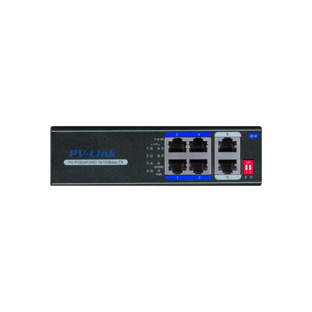 Купить Коммутатор PV-Link PV-POE04F2WD (ver. 2066), с PoE, 6 портовый, для систем видеонаблюдения