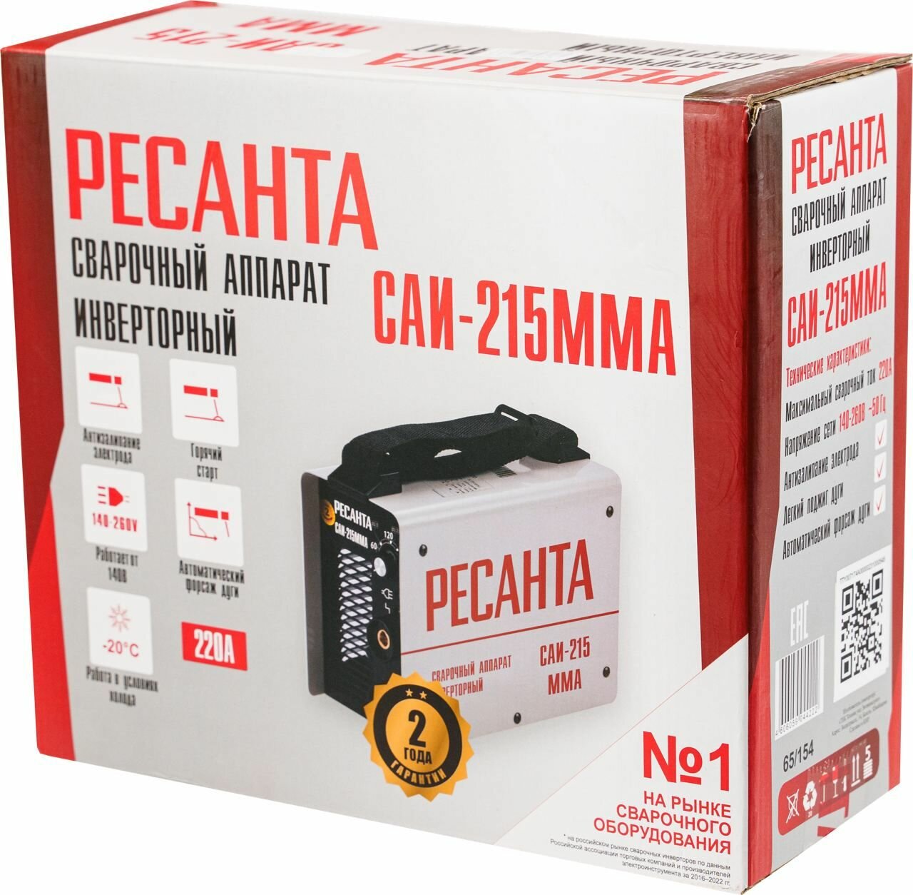 Купить Сварочный аппарат инверторный Ресанта САИ 215 ММА, 7.8 кВт, 50 Гц