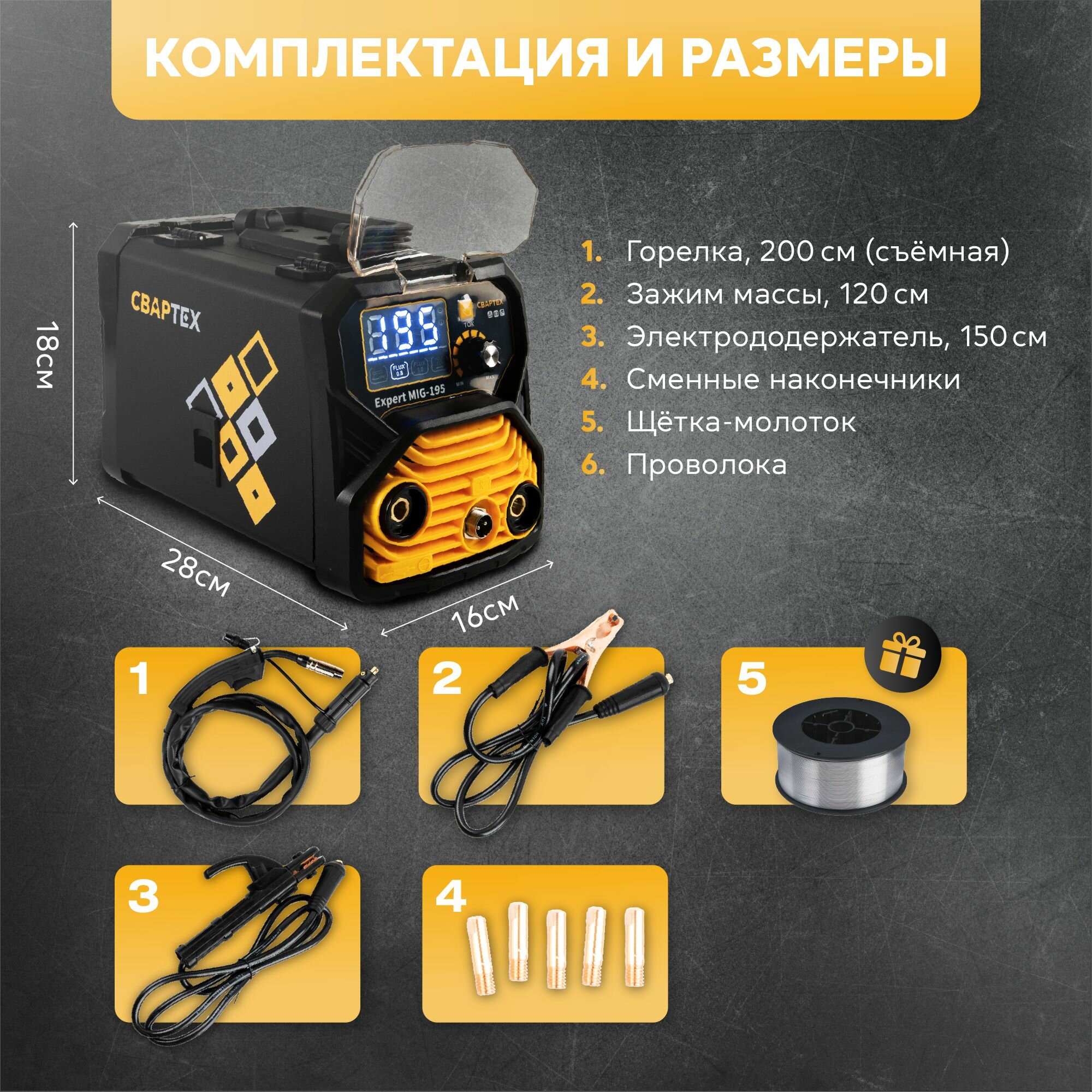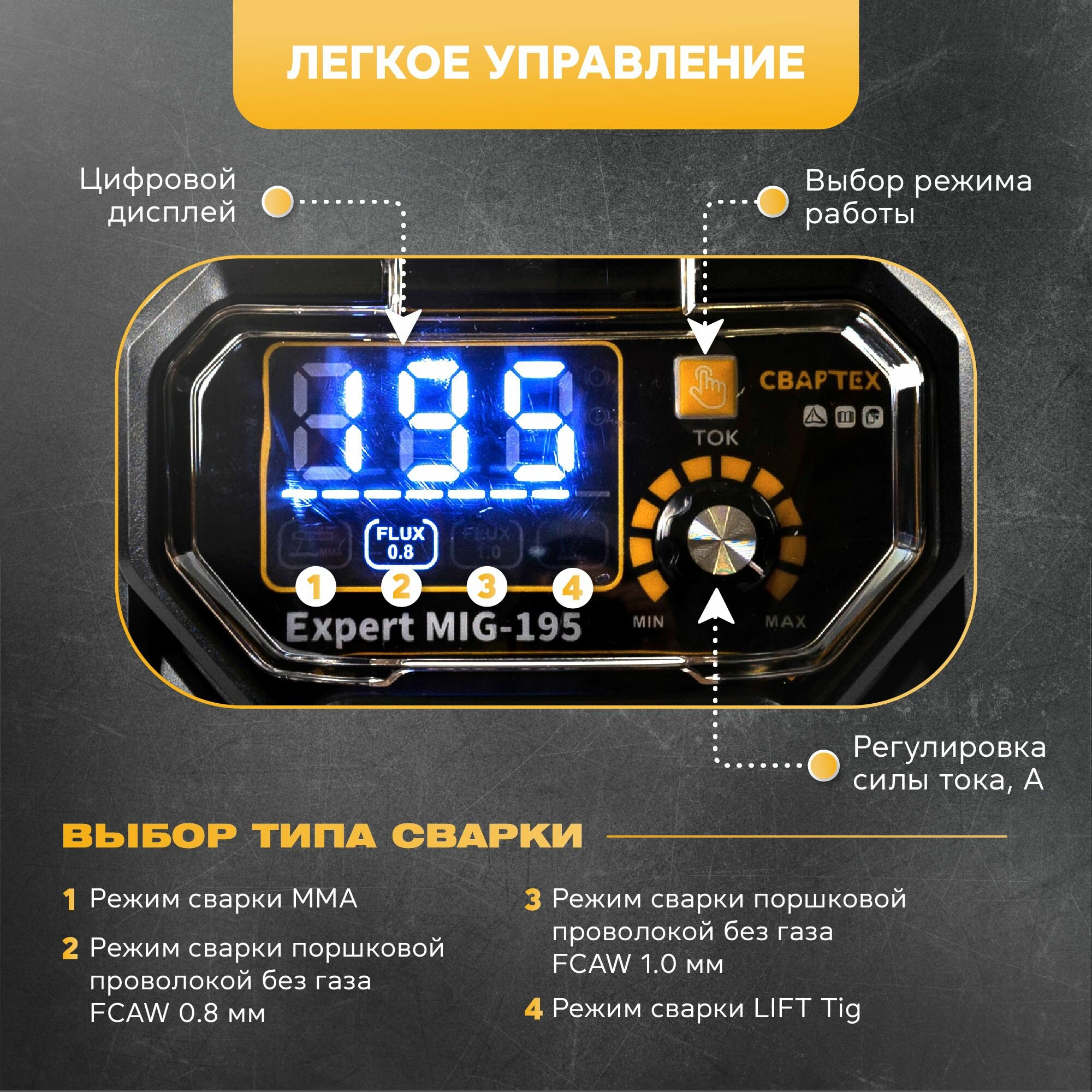 Сварочный аппарат полуавтоматический Свартех Expert MIG-195 MIG 6,9 кВт 20-195А, MMA 8,1 кВт 20-195А интересное: