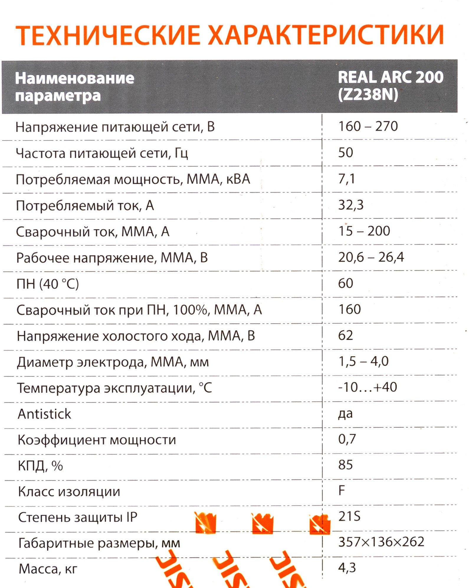 Сварочный аппарат СВАРОГ REAL ARC 200 Z238N, защита IP21S, диаметр электрода до 4мм интересное: