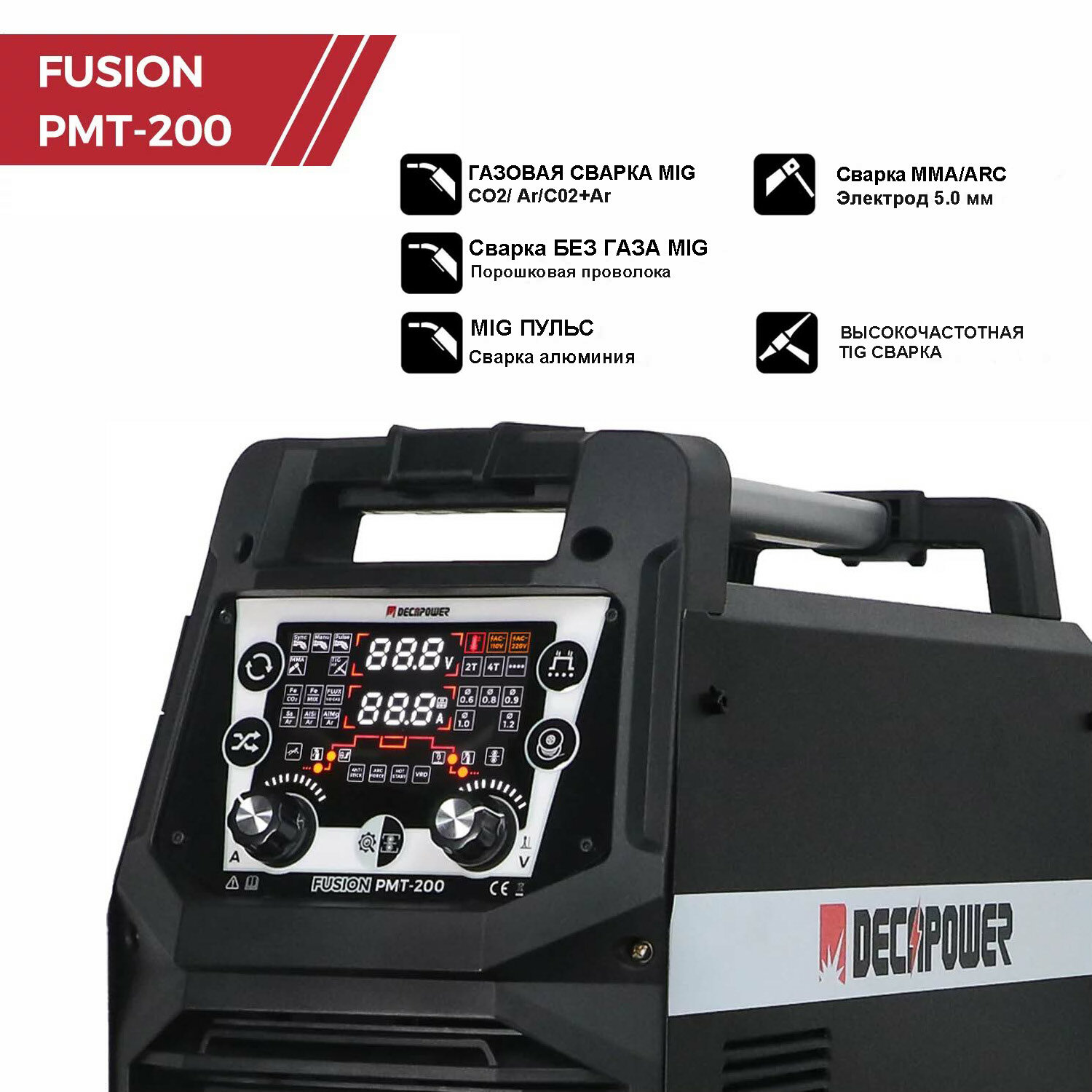 Сварочный полуавтомат DECAPOWER FUSION PMT 200 с газом/без газа, 5в1 MIG/MAG/FLUX/MMA/HF TIG - БЕЗ ГОРЕЛОК интересное: