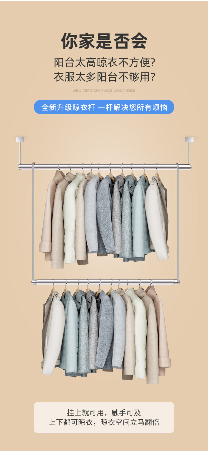 Телескопическая вешалка Shuntiancai, нержавеющая сталь, выдвижная, для сушки белья, 126-230 см интересное: