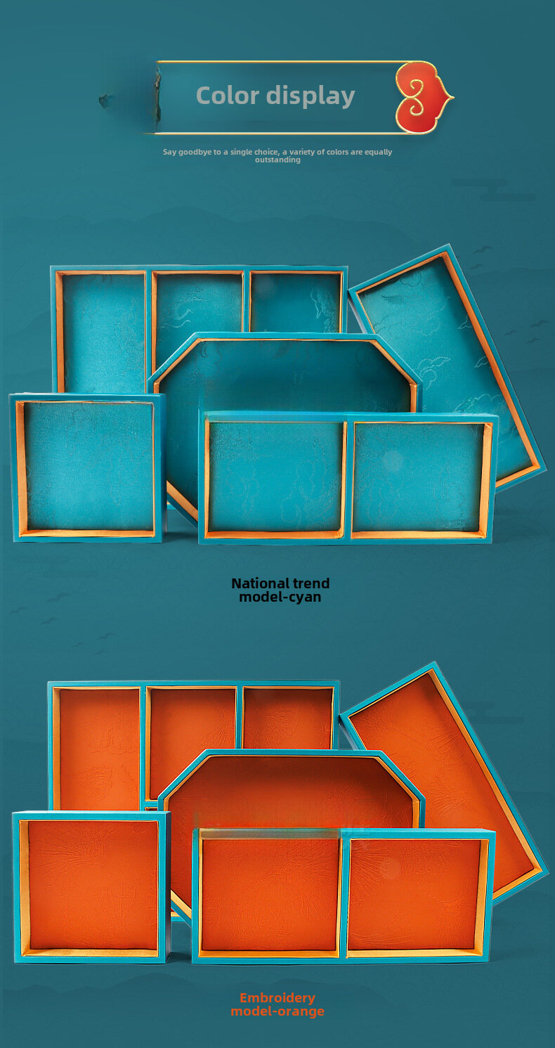 Выставочный лоток "Национальный прилив", для ювелирных изделий, с вышивкой, голубой, 6 сеток