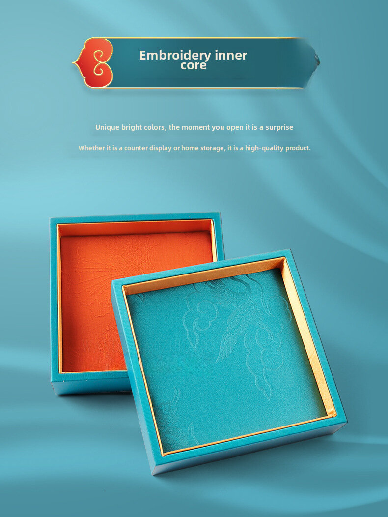 Выставочный лоток "Национальный прилив", для ювелирных изделий, с вышивкой, голубой, квадратный