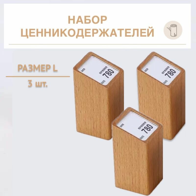 Набор ценникодержателей из 3 штук размер L цвет бук, дерево / деревянные ценники на товар интересное: