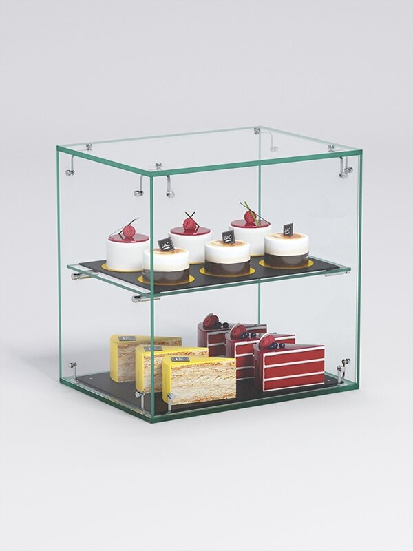 Купить Витрина "сладость" №16А-О для выпечки настольная с прямыми полками без дверки, Стекло