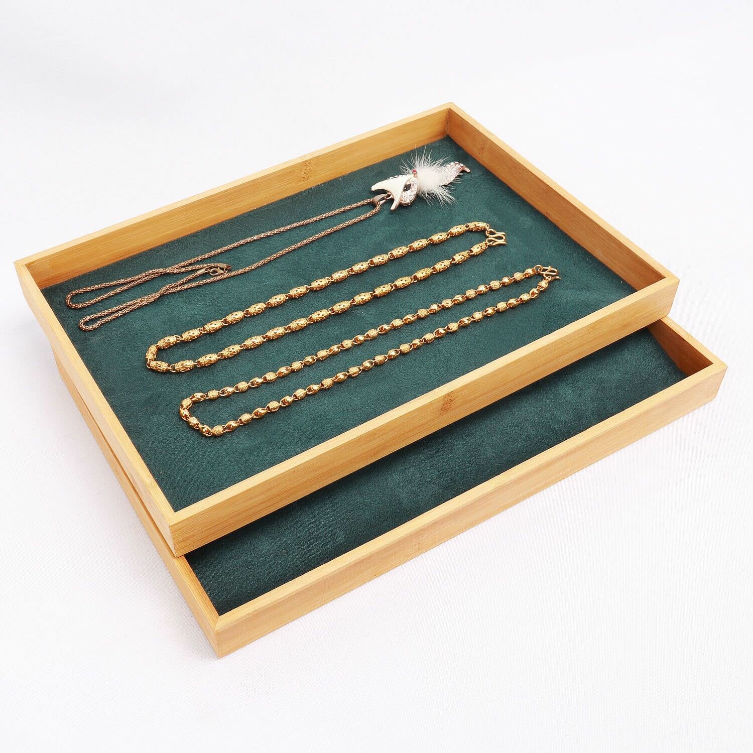 Тарелка для демонстрации ювелирных изделий "Бамбук и дерево", темно-зеленый бархат, оленьи кожи