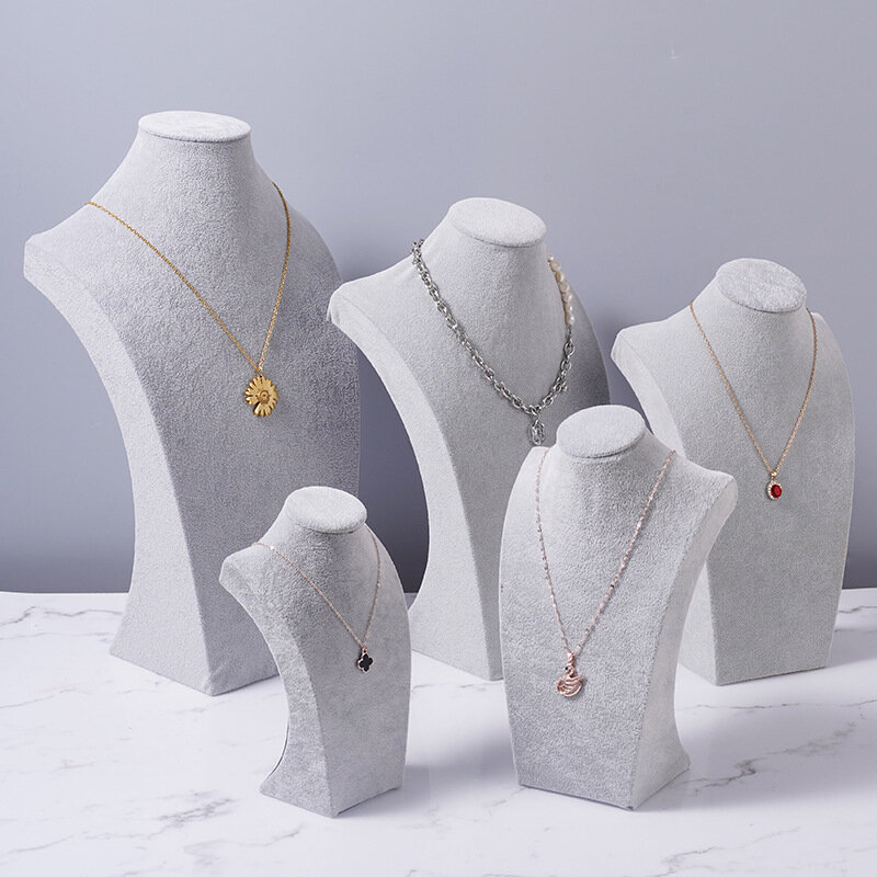 Ожерелье-стенд, для ювелирных изделий, серый бархат, высота 20 см