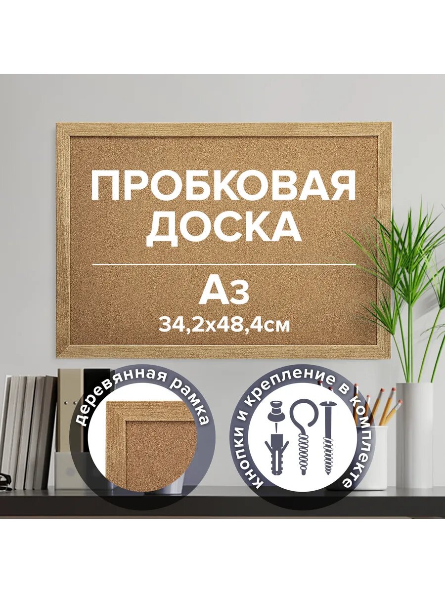 Доска пробковая для объявлений А3, 342х484 мм, гарантия 10 интересное: