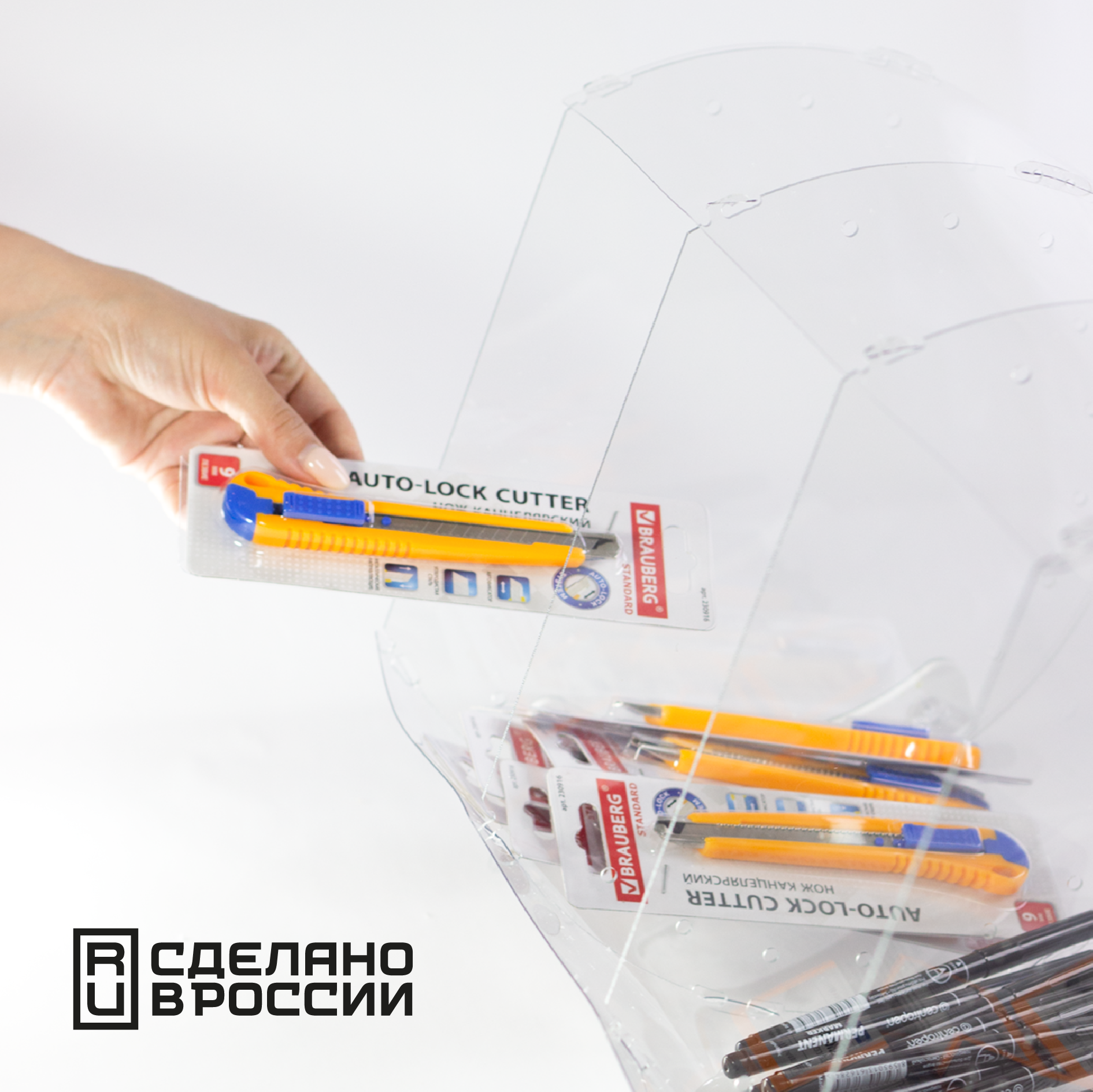 Подставка для презентации, 3 ячейки, 20,3×10,2×3,8 см, оргстекло 2 мм, В защитной плёнке