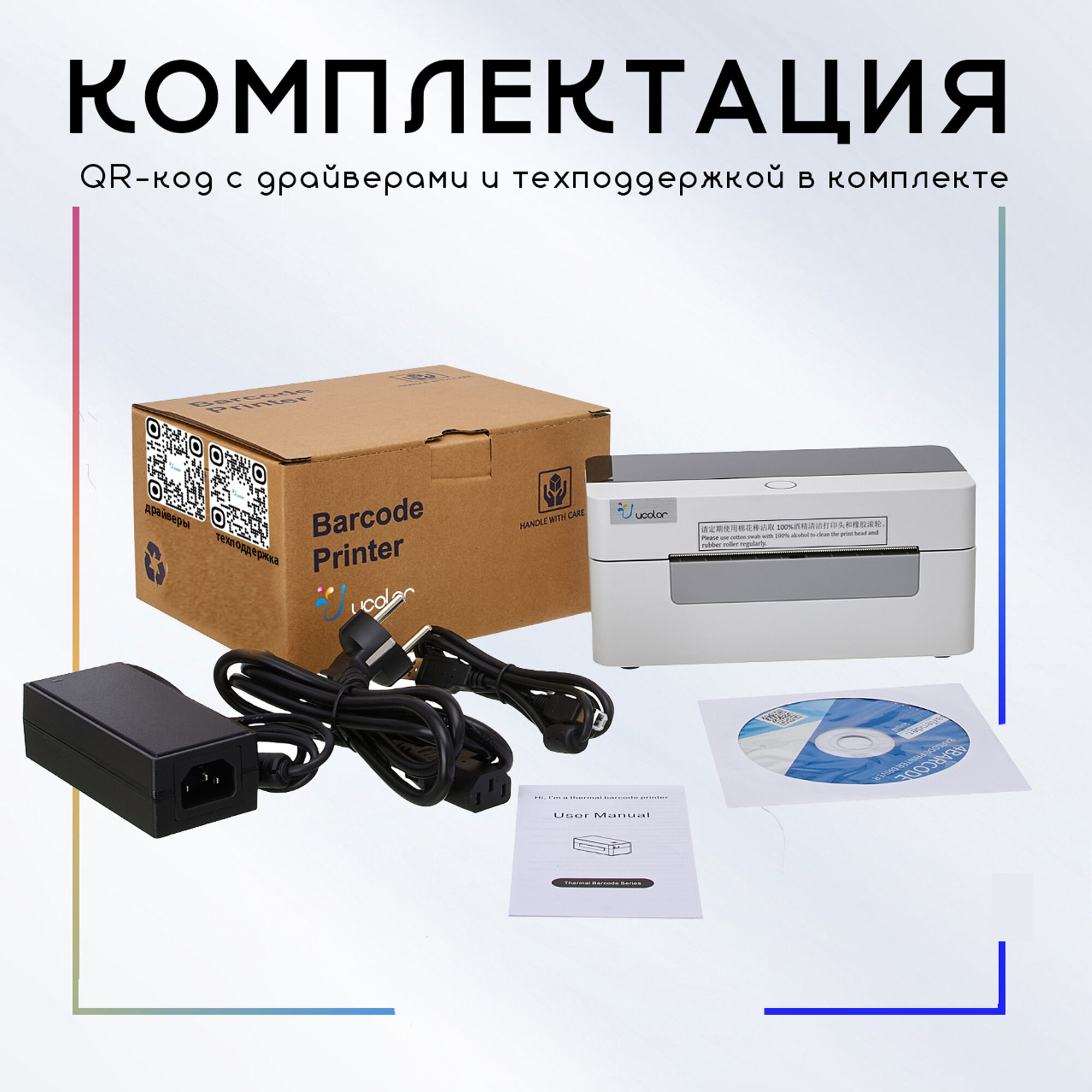 Термопринтер для этикеток Ucolor YC-D410 USB + Внешний склад бумаги в подарок интересное: