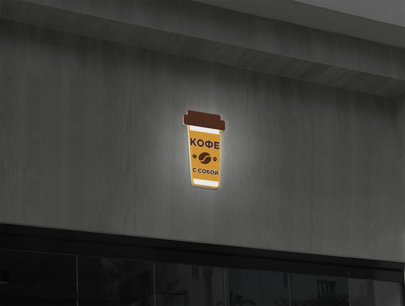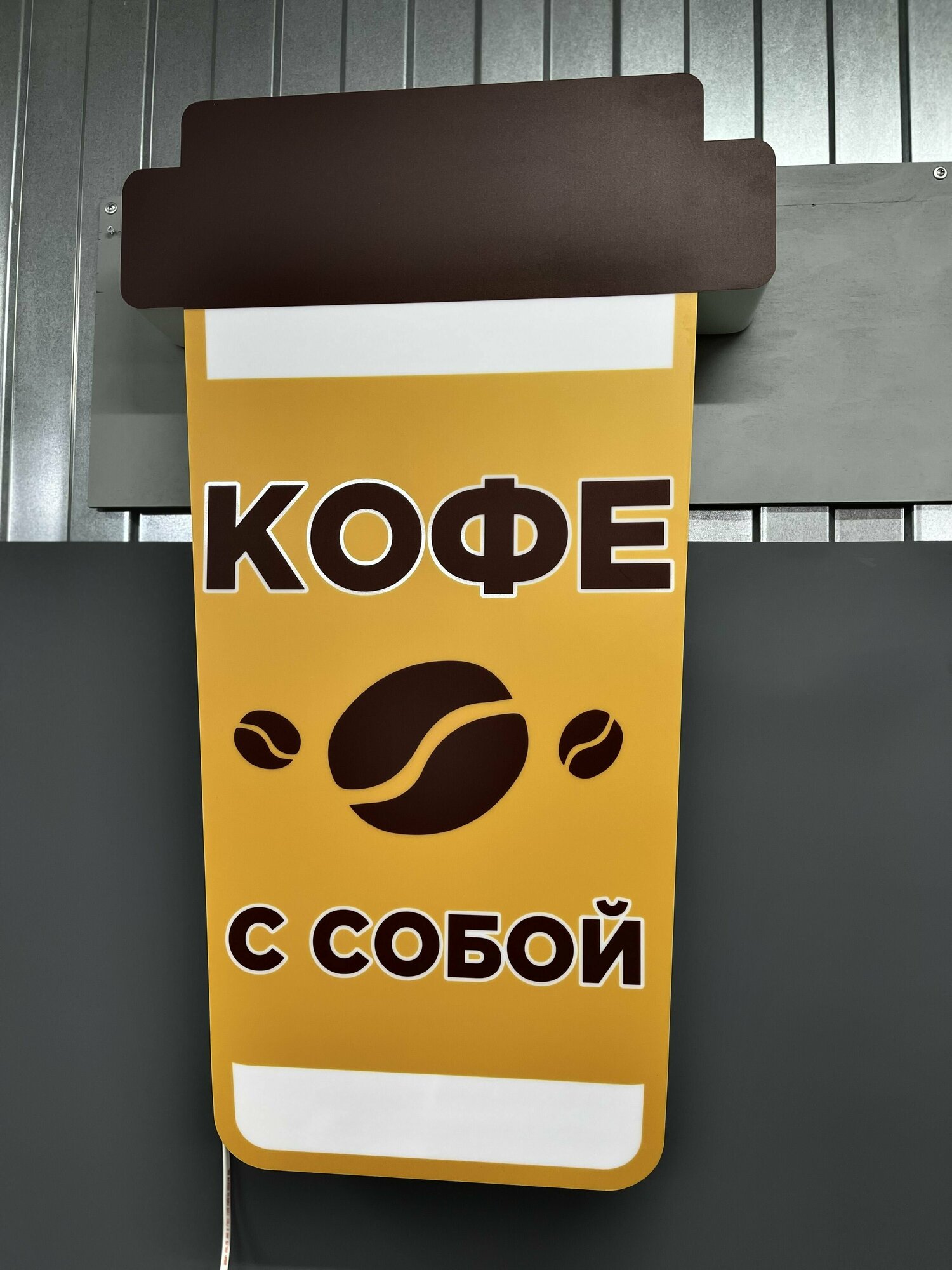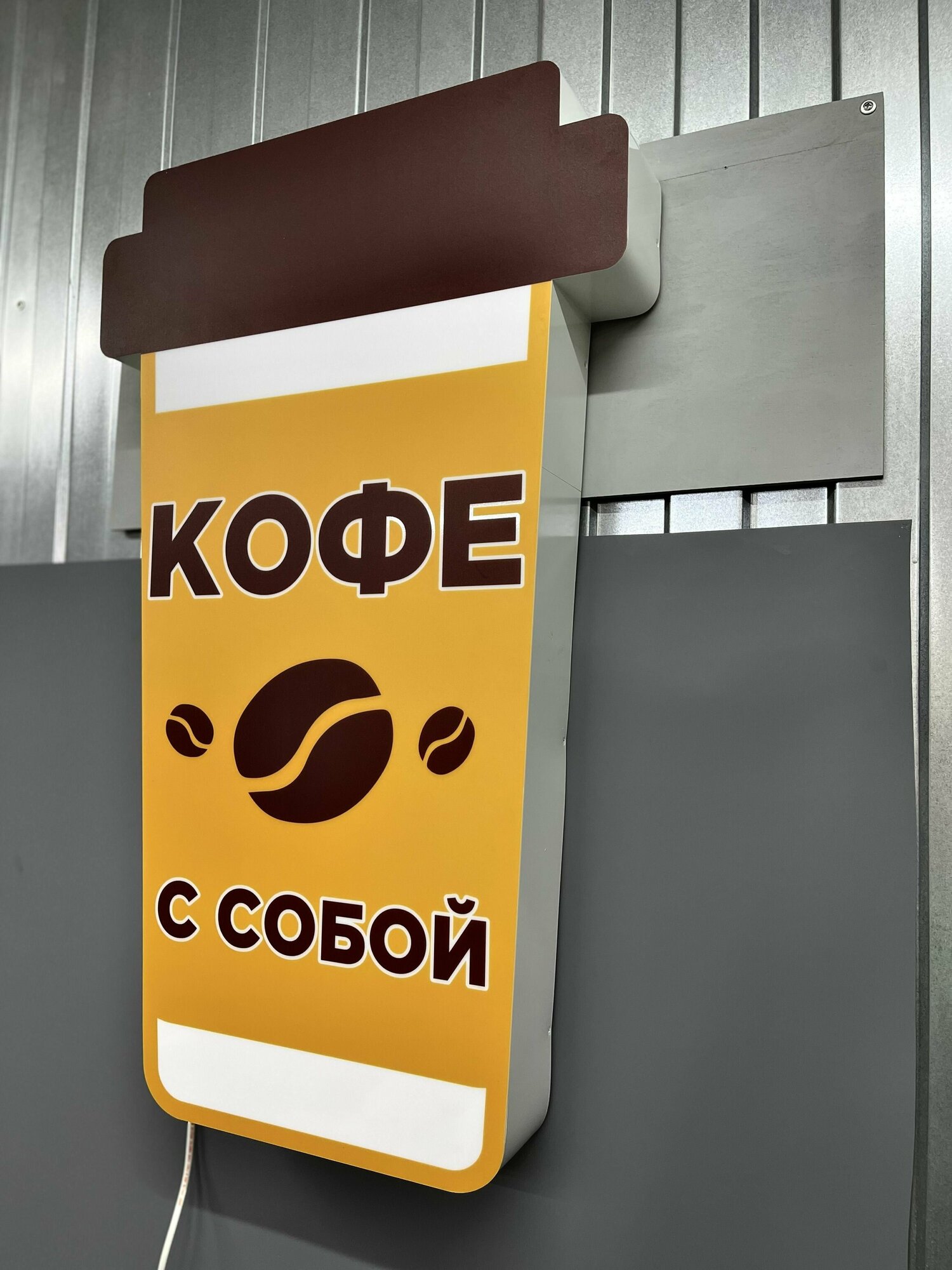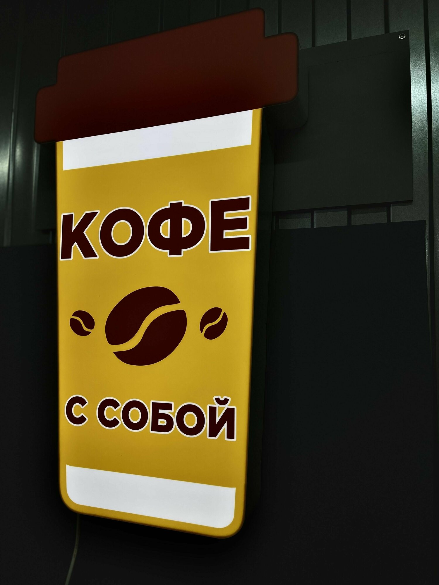 Световая вывеска "Кофе с собой" Объемный короб с подсветкой Лайтбокс фигурный интересное: