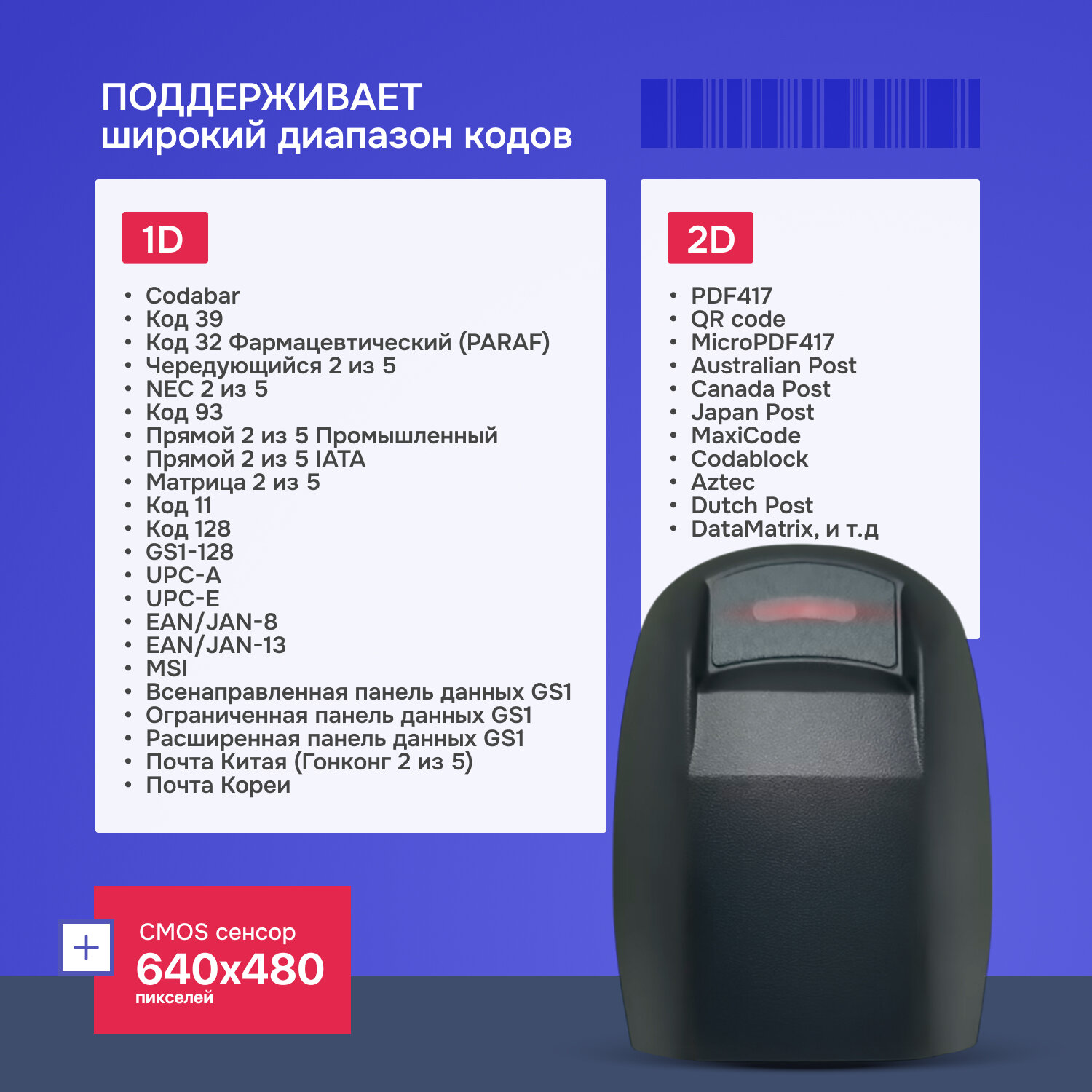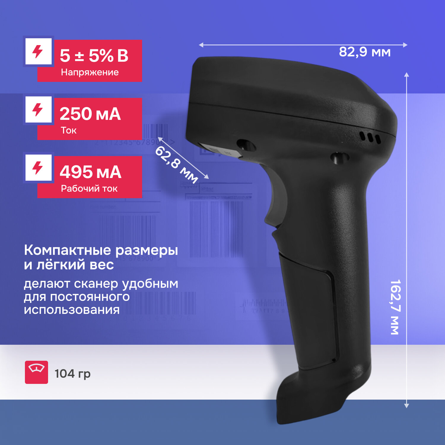 Беспроводной сканер штрих-кода МойPOS MSC-9516W2D, арт. 4534, 2D, черный, без подставки Cradle