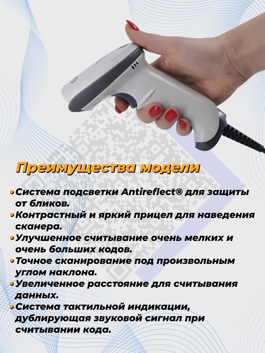 Проводной сканер штрих-кода MERTECH 2210 SUPERLEAD P2D USB White 3 m cable интересное: