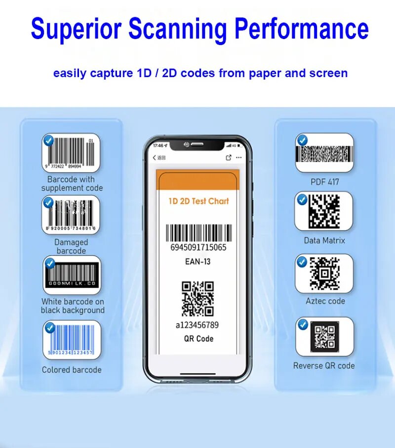 HBAPOS Беспроводной сканер штрих-кодов 2D, HBA-W7-Black интересное: