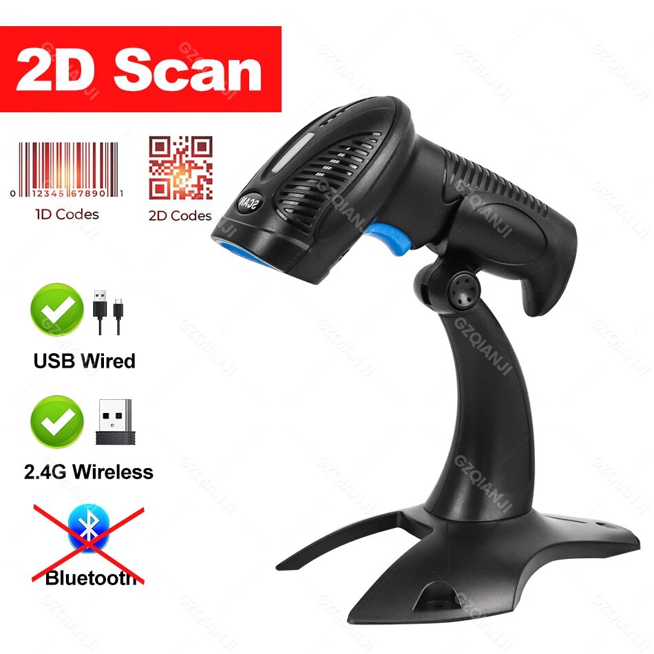 Купить Беспроводной сканер штрих-кода 1D/2D/QR, 2D USB 2.4G Stand
