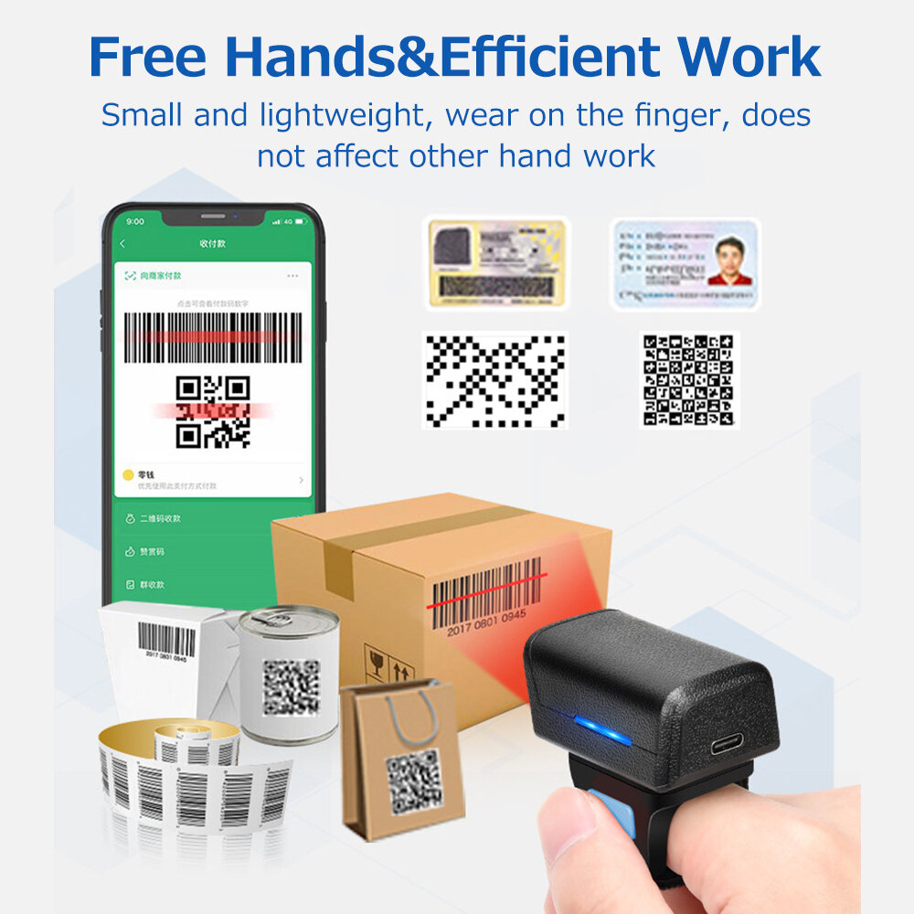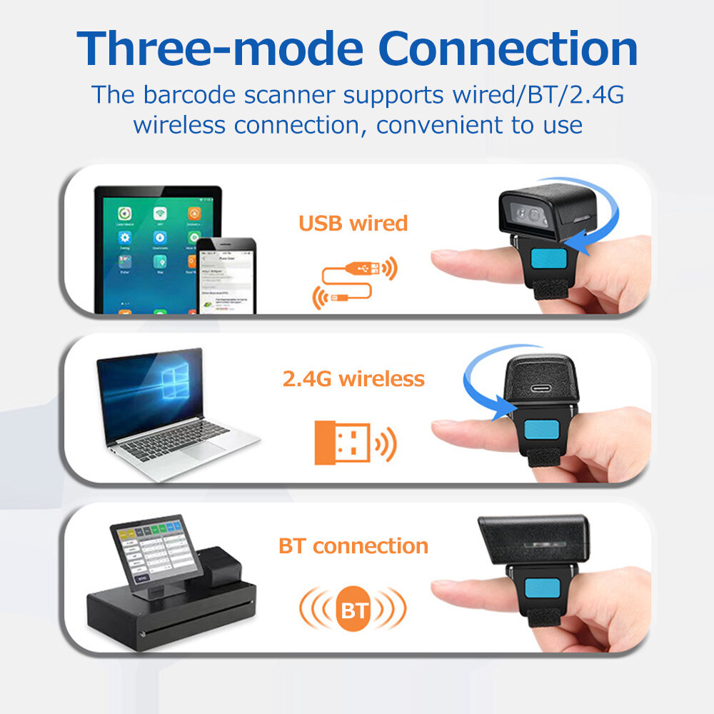 Носимый кольцевой сканер штрих-кода Проводной USB + 2,4G + BT Трехрежимное подключение интересное: