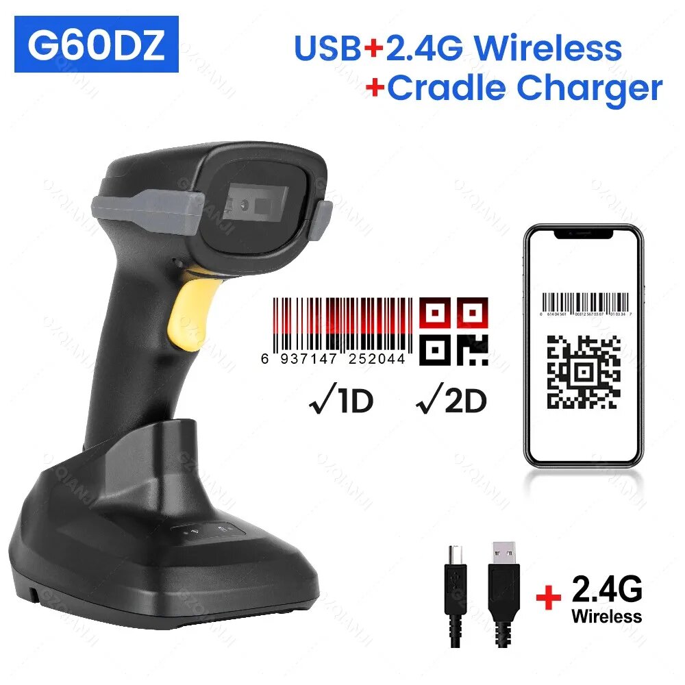 Купить Беспроводной сканер штрих-кодов Bluetooth 2.4ГГц, 2D Wirelss Base