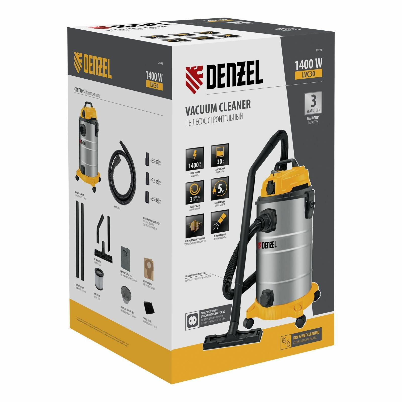 Купить Пылесос строительный LVC30, 1400 Вт, бак 30 л, шланг 3 м, розетка с автосинхр. Denzel