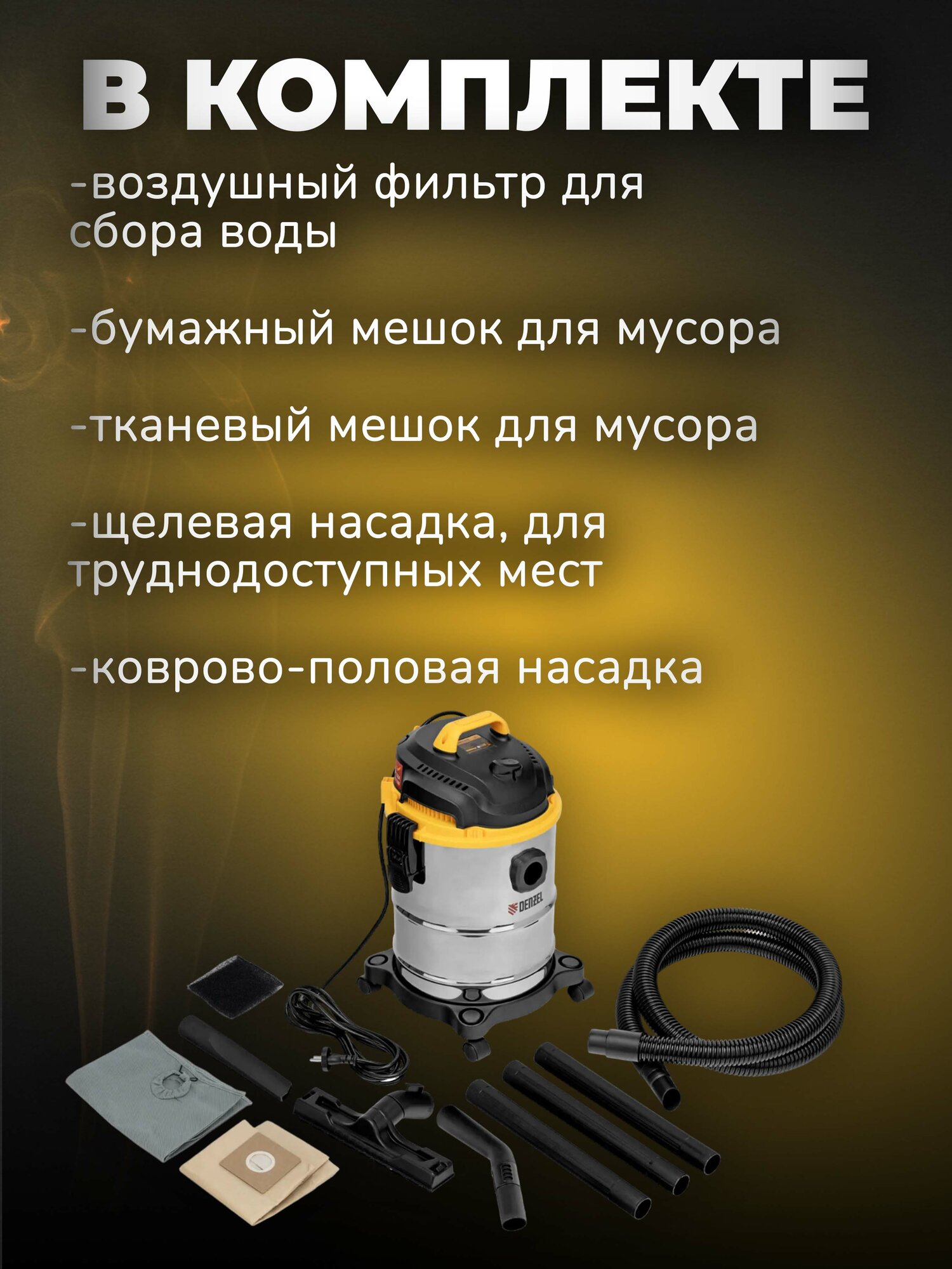Пылесос строительный Denzel SVC15, профессиональный 1200 Вт, бак 15 л, шланг 2 м интересное: