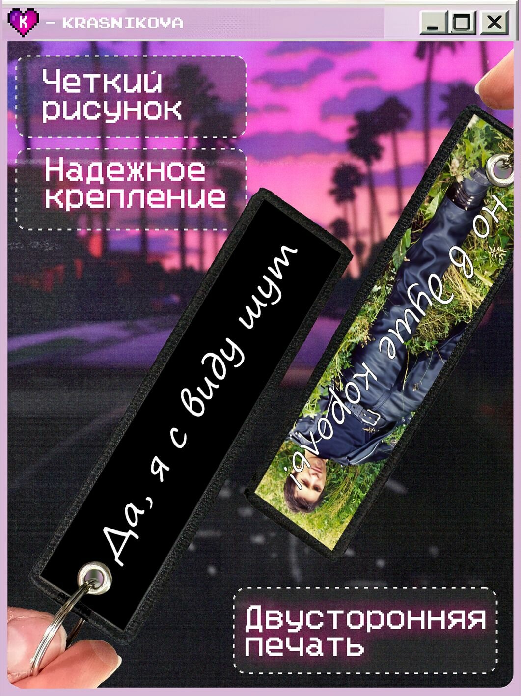 Брелок KRASNIKOVA, гладкая фактура, черный, розовый, серый, красный