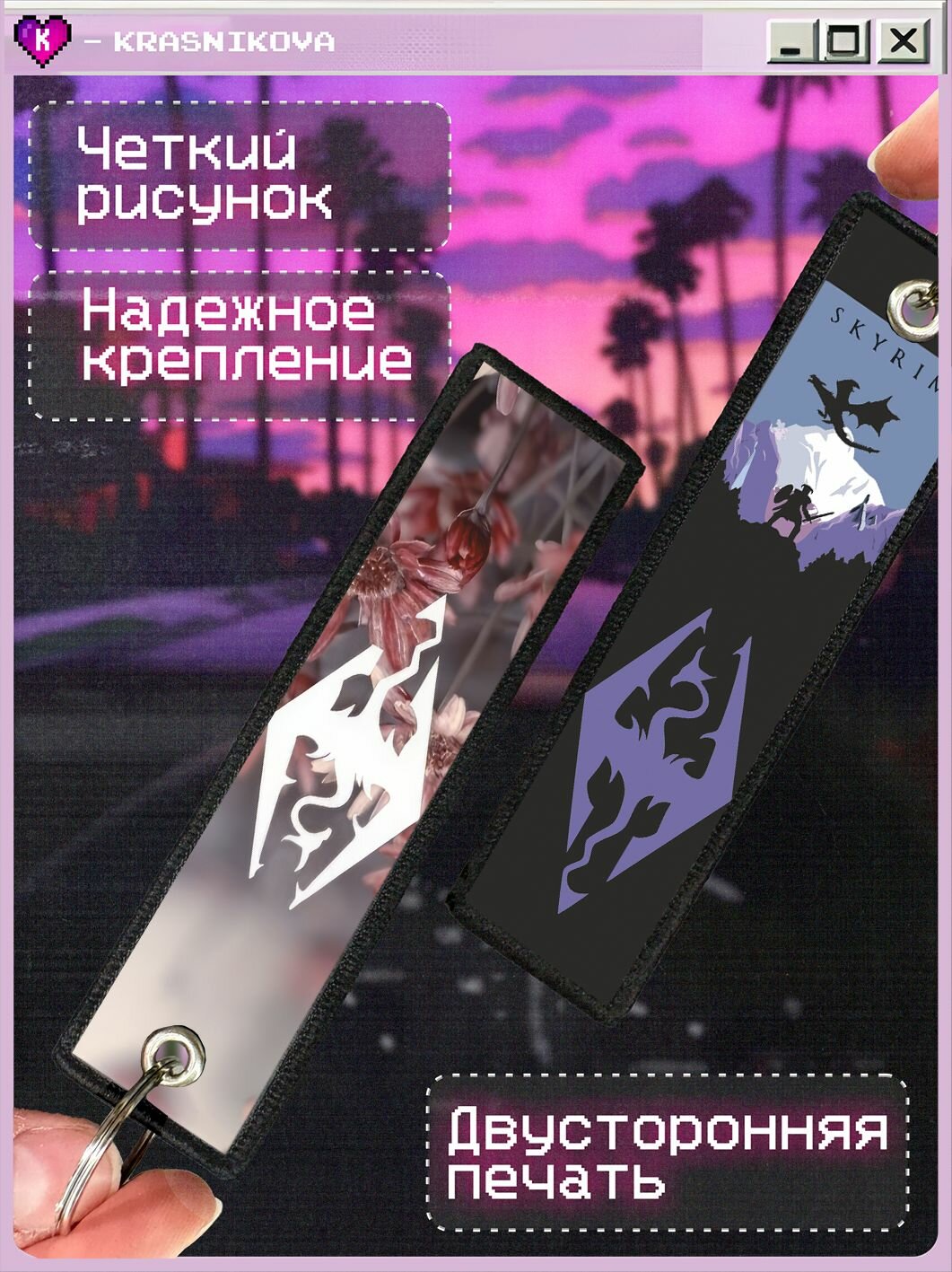 Брелок KRASNIKOVA, гладкая фактура, розовый, черный, белый интересное: