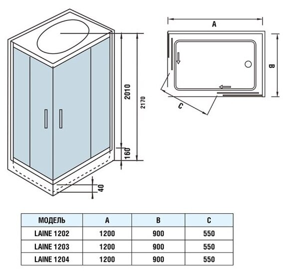Душевые кабины WeltWasser LAINE 1202 1200х900х2170 мм