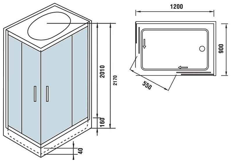 Душевая кабина WeltWasser WW 500 LAINE 1202 120х90х217 см.
