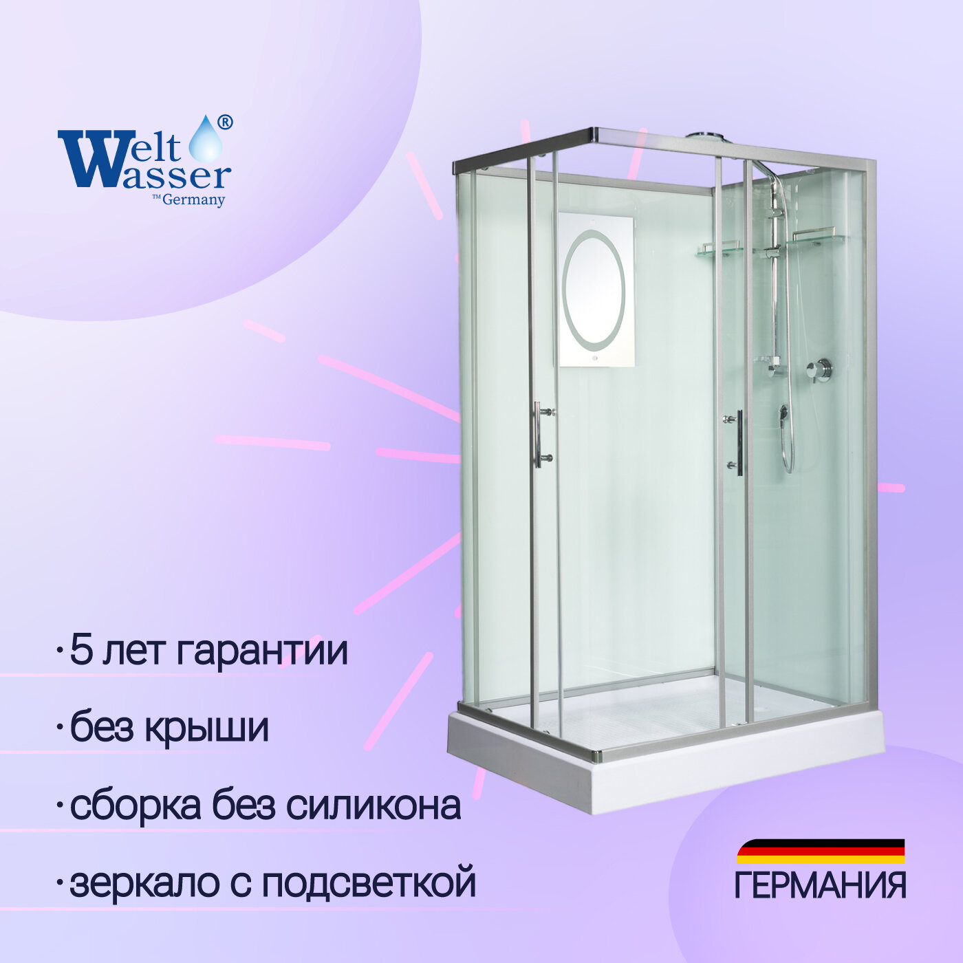 Душевая кабина WeltWasser LAINE 1201 бессиликоновая сборка