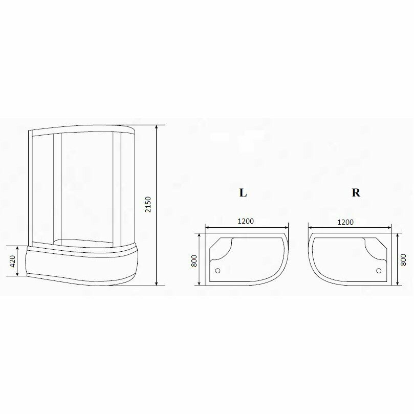 Timo eco TE-0720 Р R душевая кабина без Г/М форсунок 120*80*218