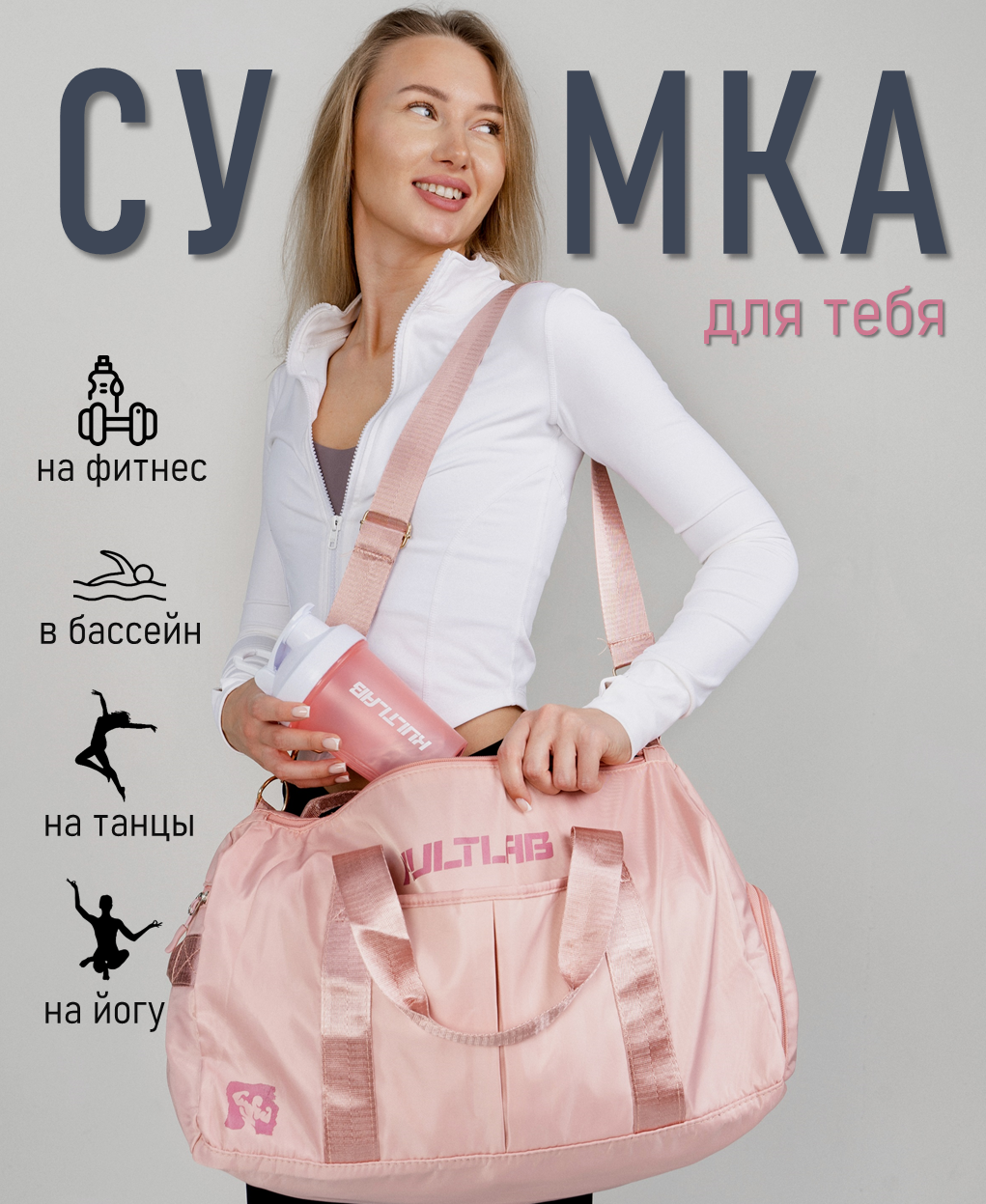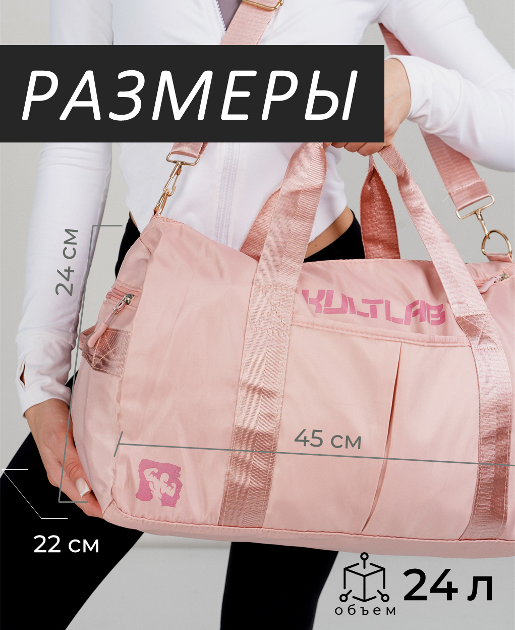 Сумка спортивная KULTLAB, 24 л, 22х24х45 см, ручная кладь, розовый интересное: