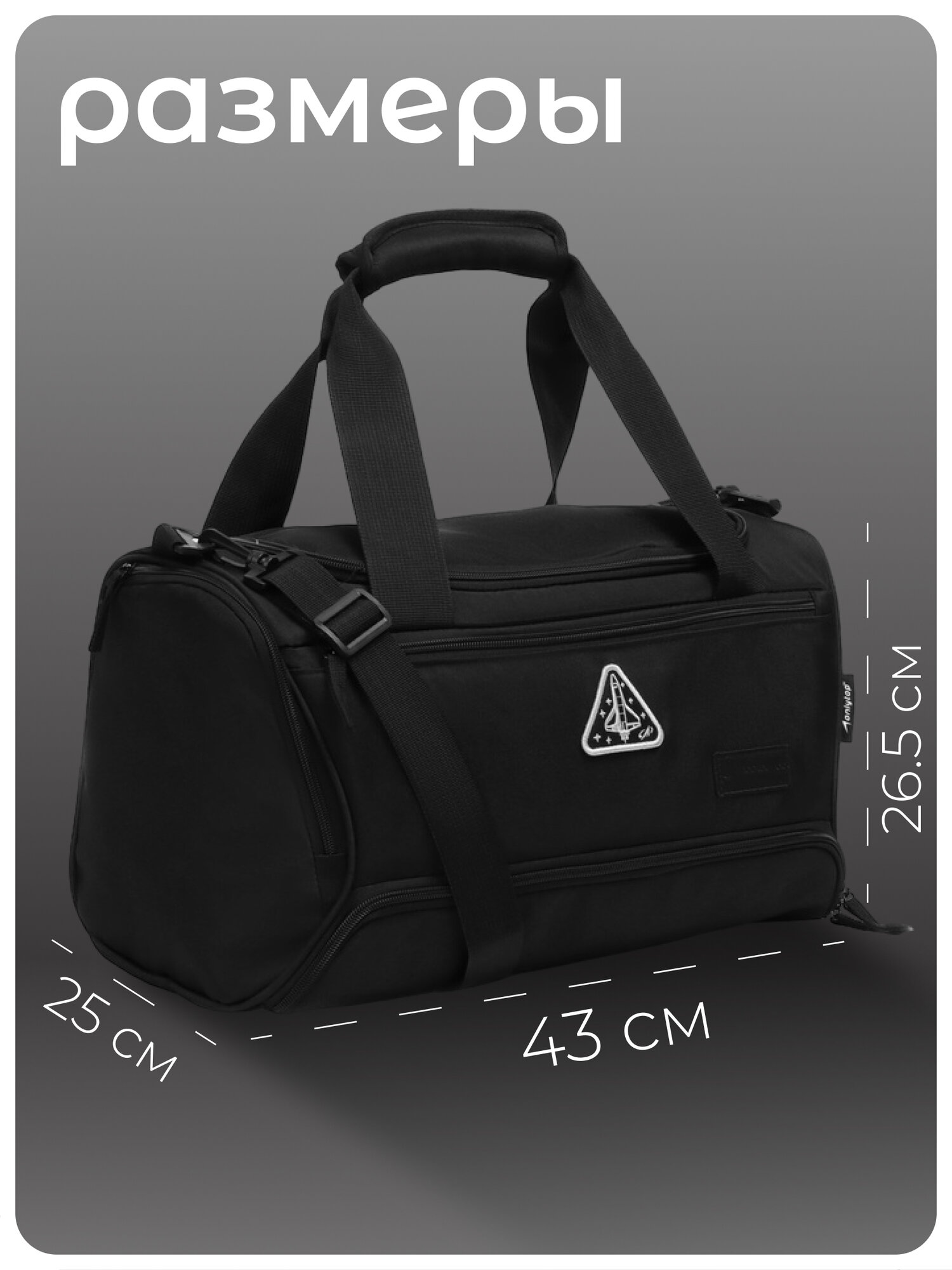 Сумка спортивная РОСКОСМОС х ONLYTOP, 41 л, 25х26.5х40 см, ручная кладь, черный интересное: