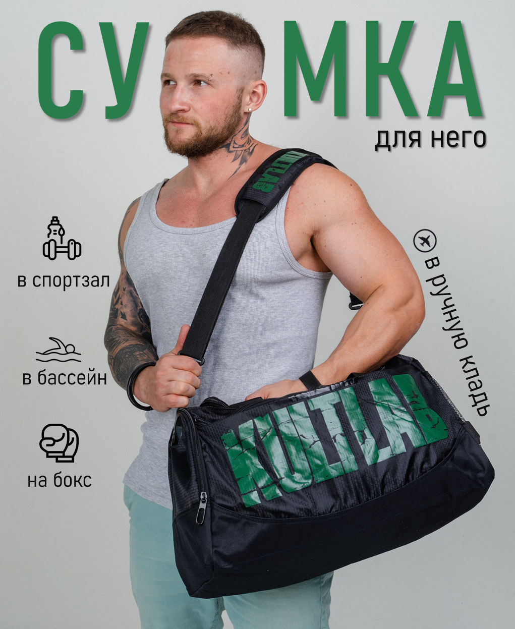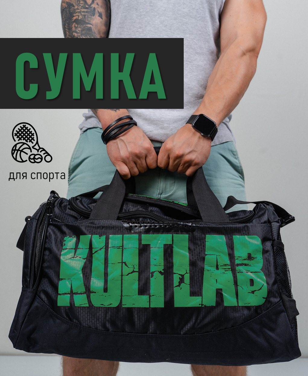 Сумка спортивная KULTLAB, 26 л, 21х28х45 см, ручная кладь, зелeный интересное: