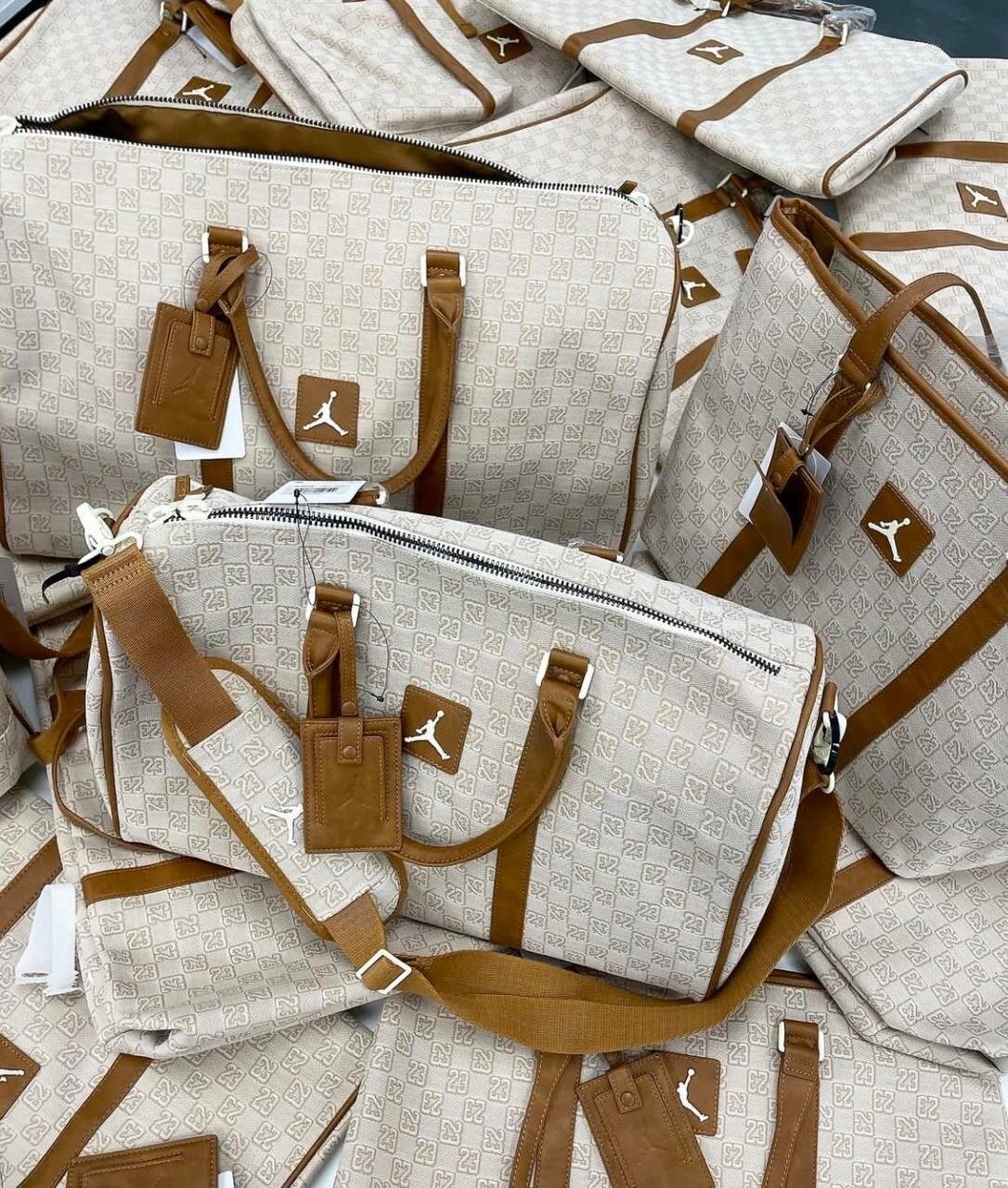 Сумка спортивная Jordan, 25 л, 20х27х47 см, ручная кладь, слоновая кость