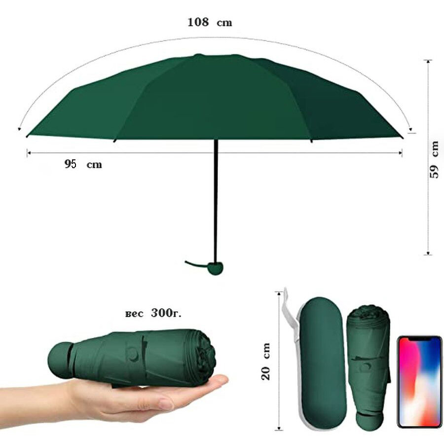 Мини-зонт ZUODU, зеленый интересное: