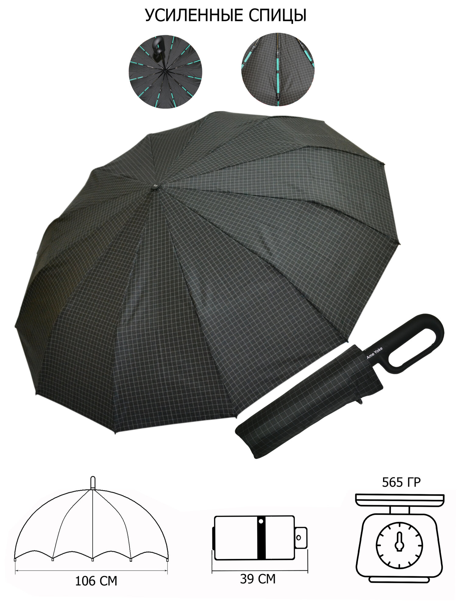 Зонт Ame Yoke, черная клетка интересное: