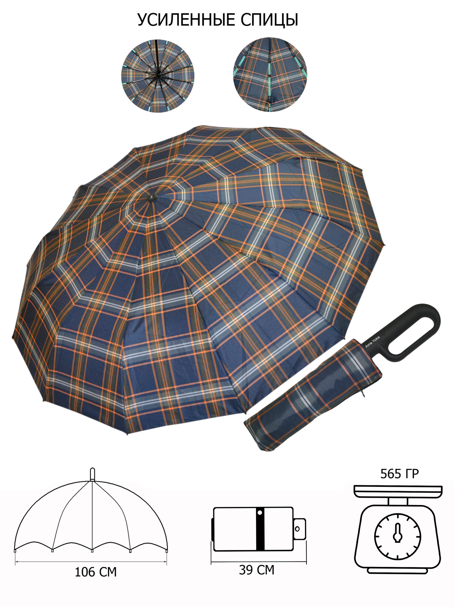 Зонт Ame Yoke, черная клетка