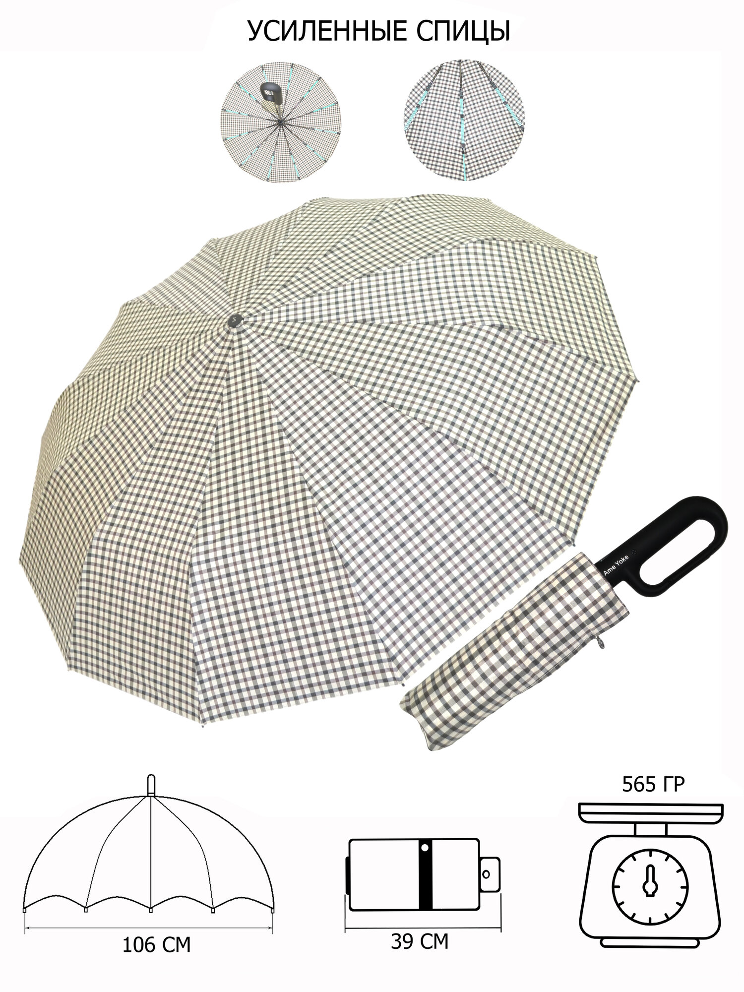 Зонт Ame Yoke, черная клетка