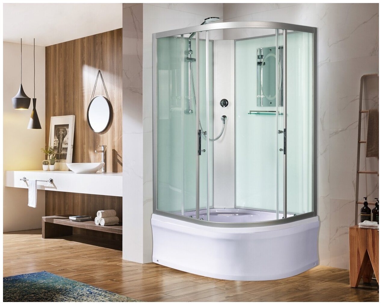 | Отзыв: | Недавно покупал для своей ванной. Лейка регулируется в нескольких положениях, также можно закрепить на специальную штангу и использовать как верхний душ. В кабине очень просторно, душ принимать комфортно и удобно. Зеркало и полочка установлены на удобном расстоянии. Двери раздвижные, двигаются в обе стороны. Стекла очень прочные, вроде как анти ударные. |