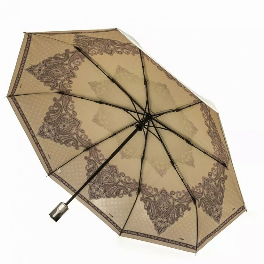 Зонт "Три Слона" женский №310-5, купол D=103 см, 10 спиц, суперавтомат бежево-черный