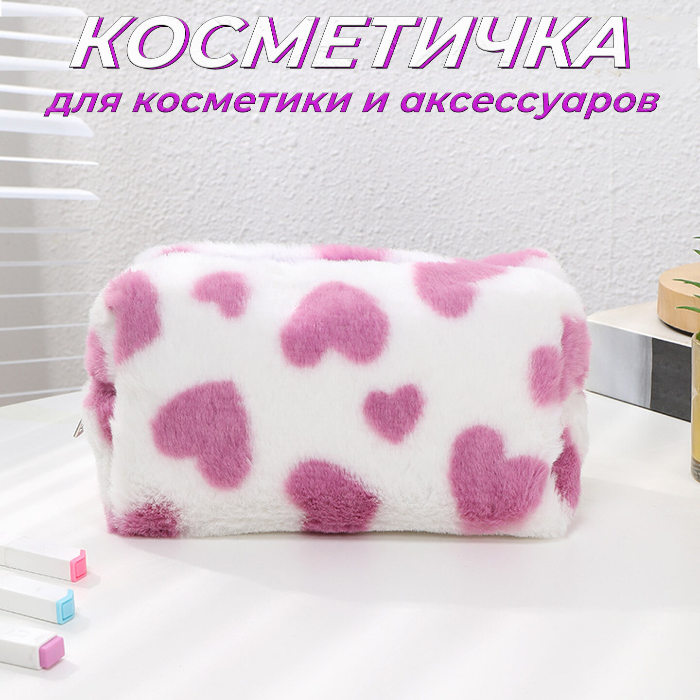 Косметичка 9х11х21 см, , белый/розовый интересное: