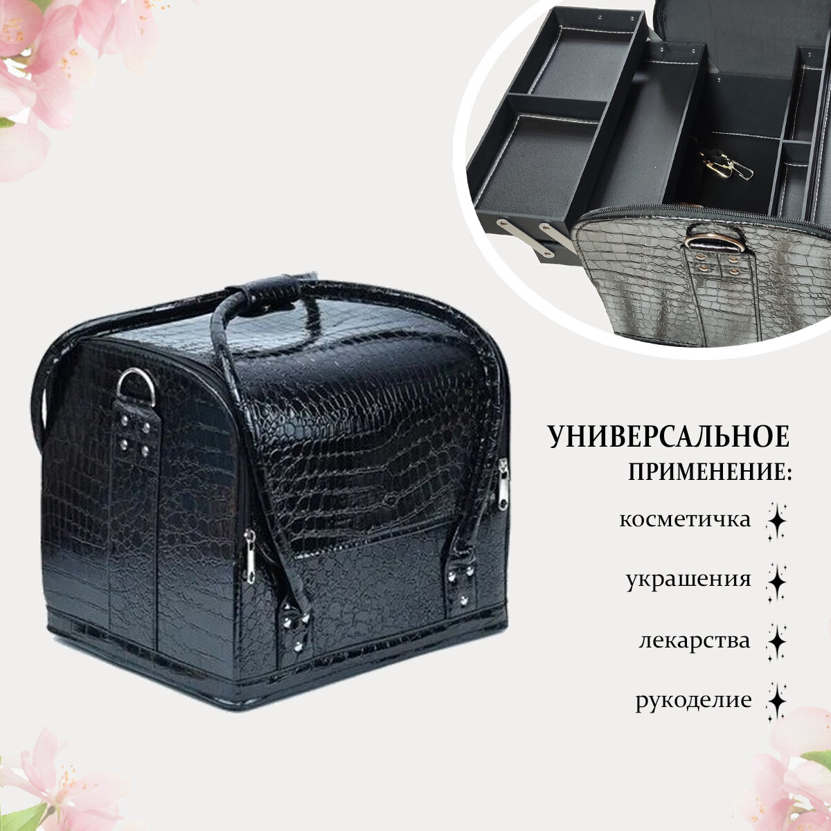 Бьюти-кейс Tartiso, 24х24.5х30 см, 5 шт., , черный интересное: