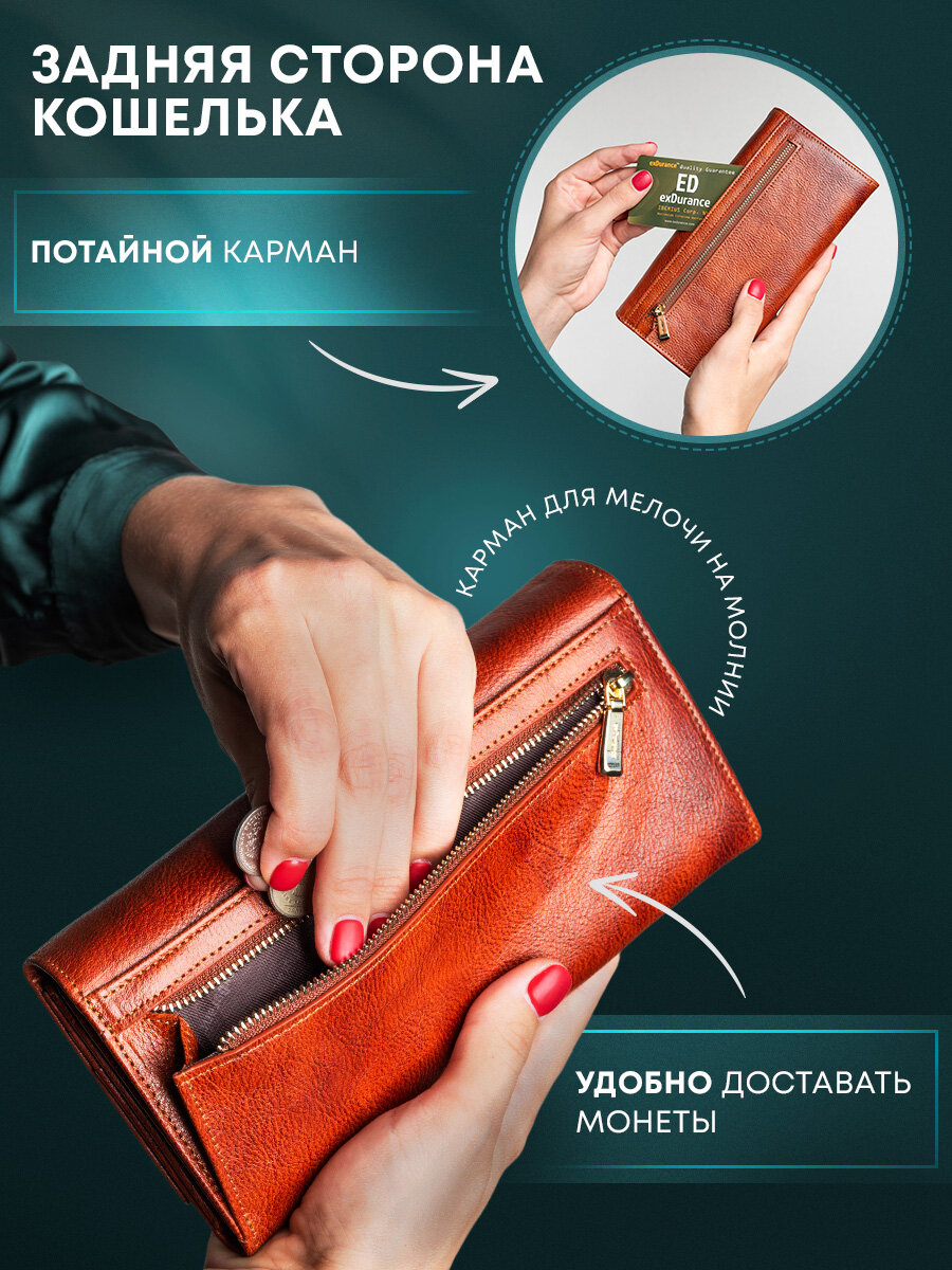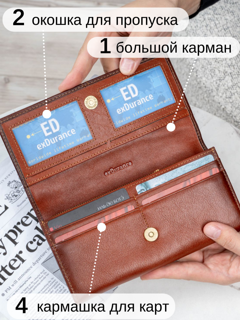 Портмоне exDurance, фактура гладкая, коричневый интересное: