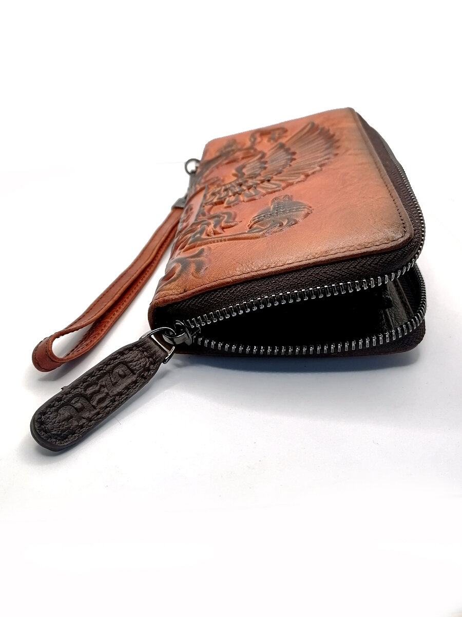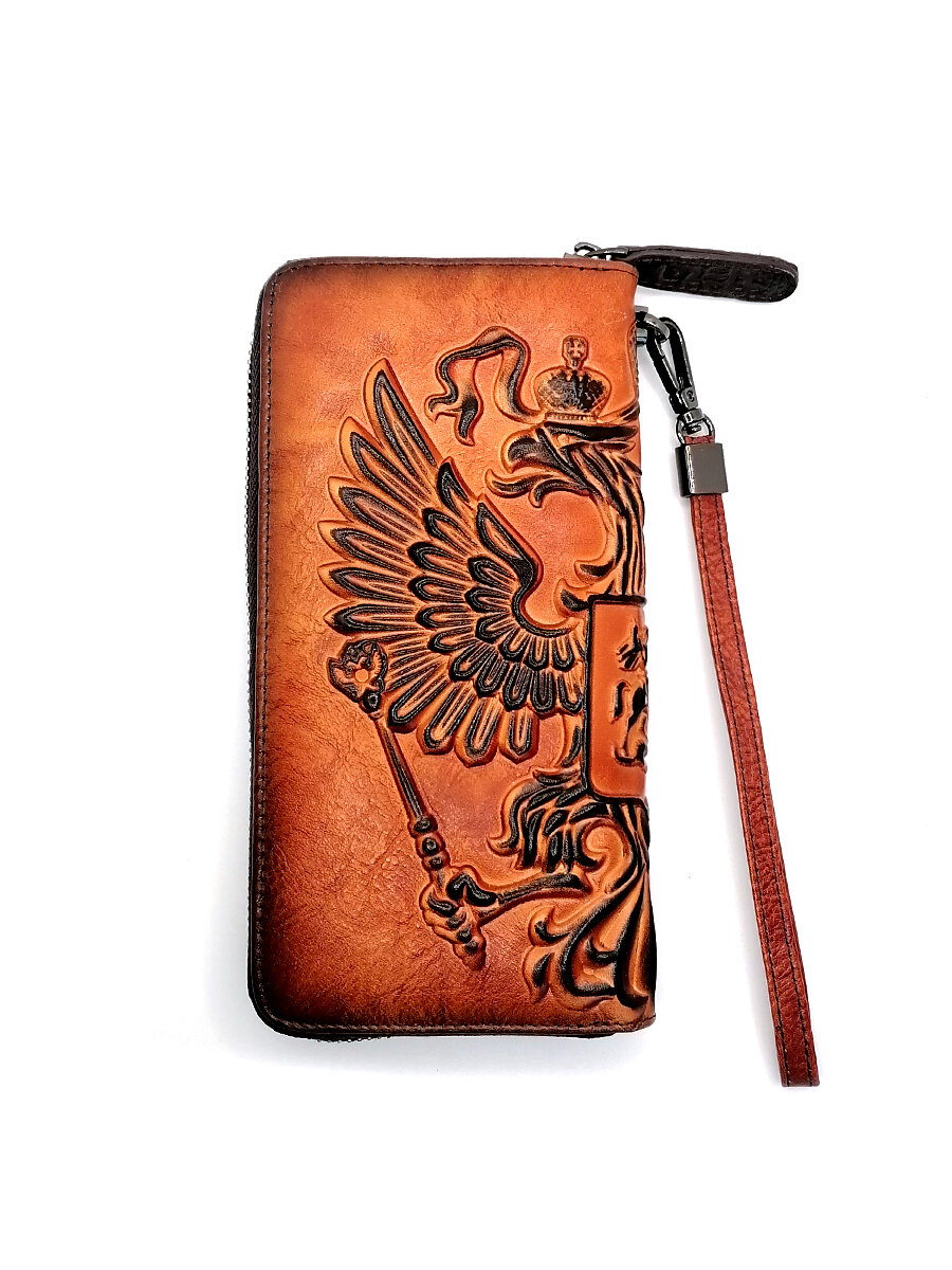 Кошелек Dzett, фактура тиснение, оранжевый, коричневый