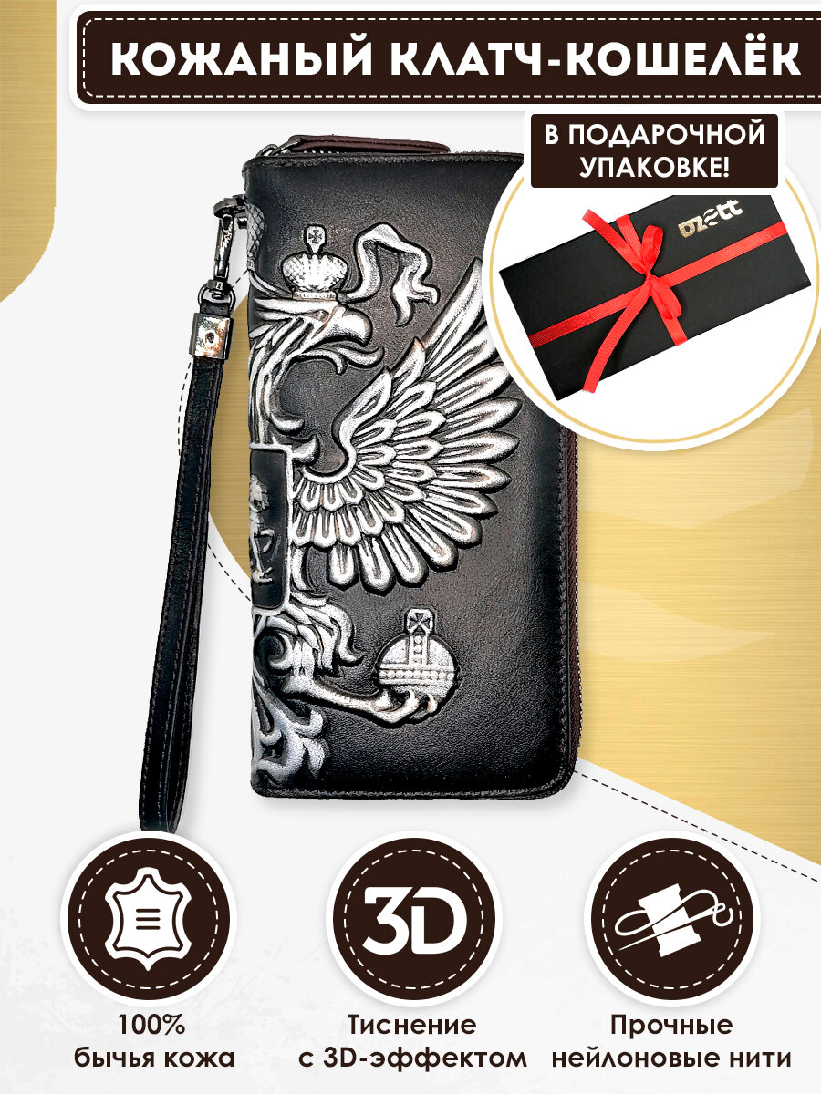 Кошелек Dzett, фактура тиснение, черный, коричневый
