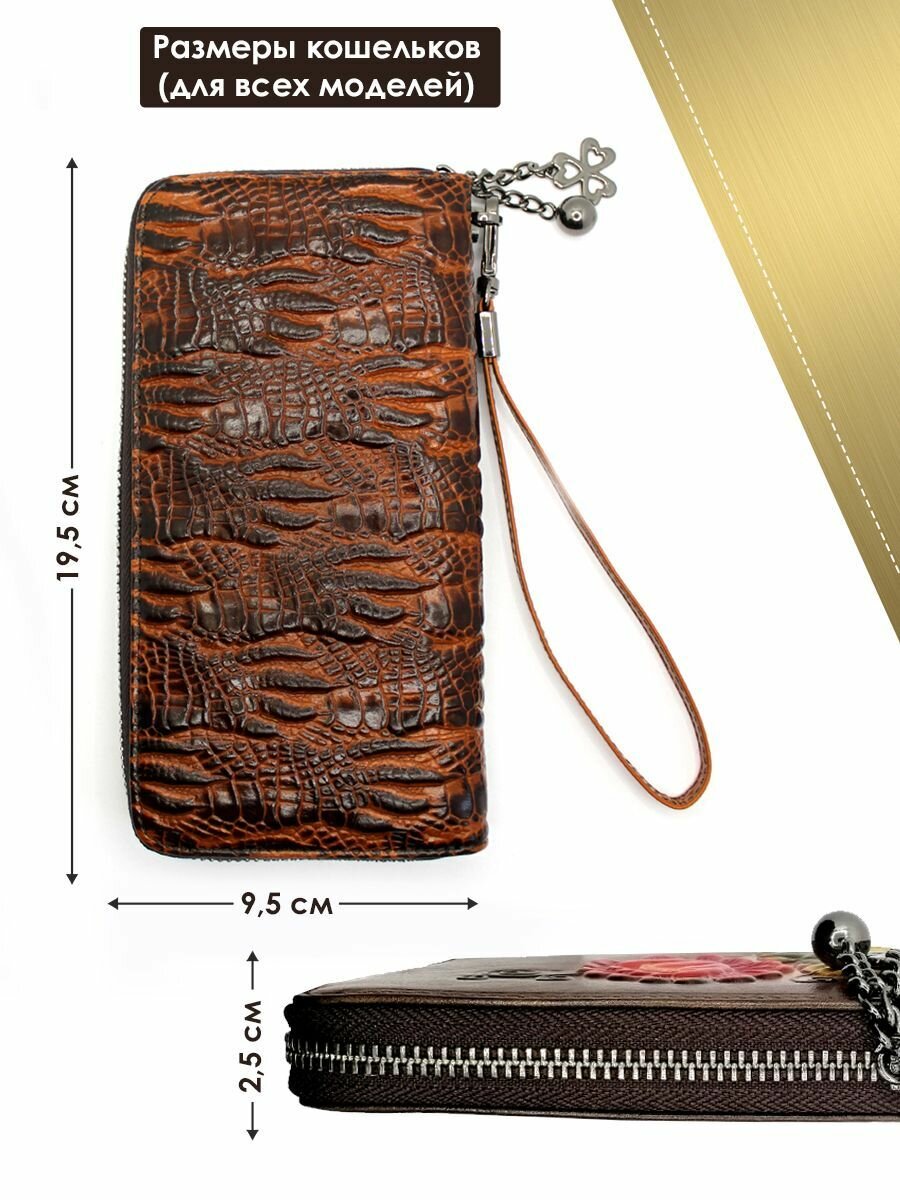 Кошелек Dzett, фактура тиснение, коричневый, оранжевый