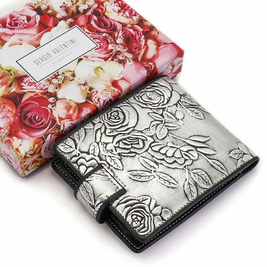 Купить Кошелек Sergio Valentini, фактура тиснение, серебристый/черный