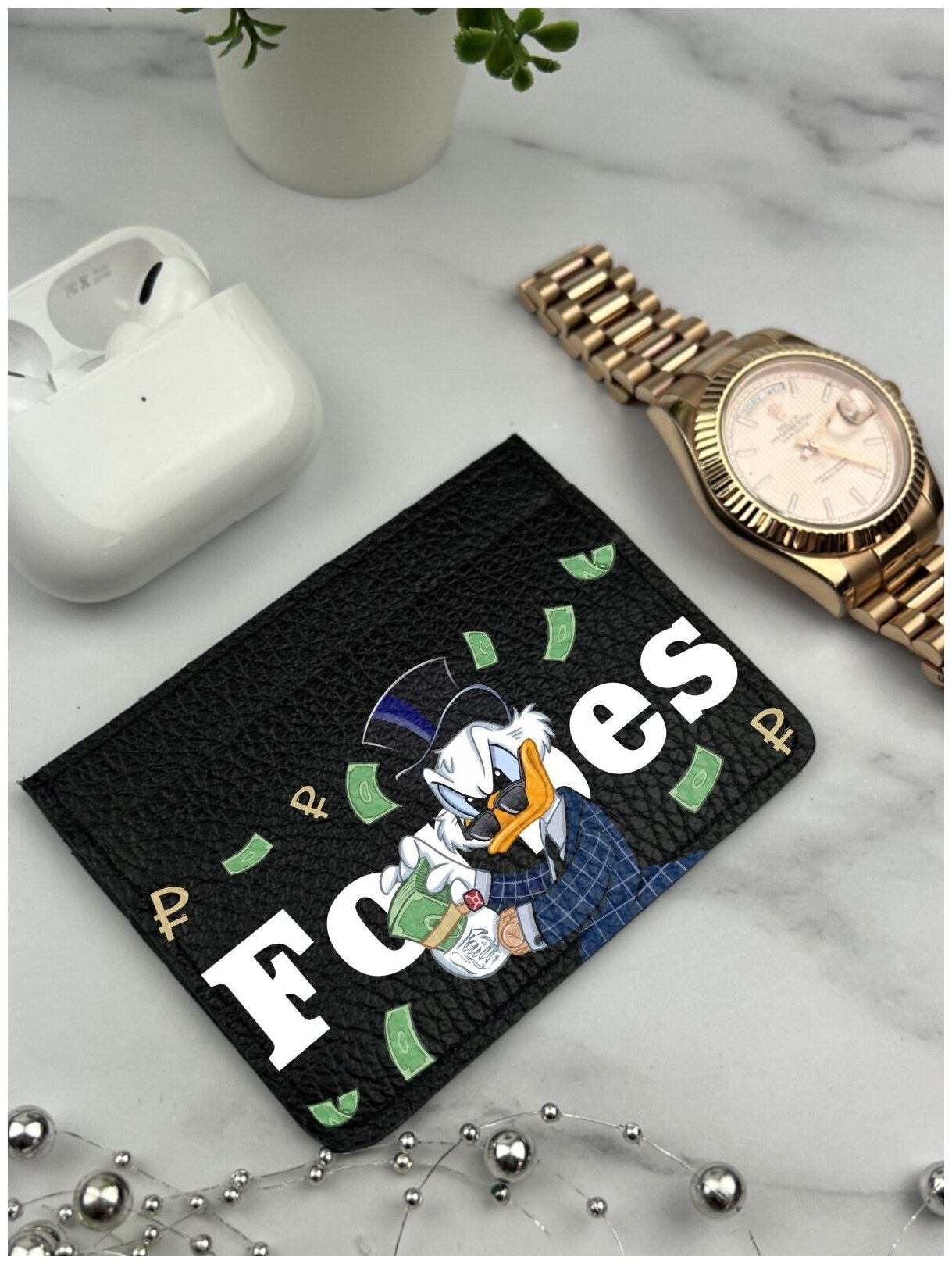 Картхолдер MustHaveCase, фактура под рептилию, зернистая, белый/черный