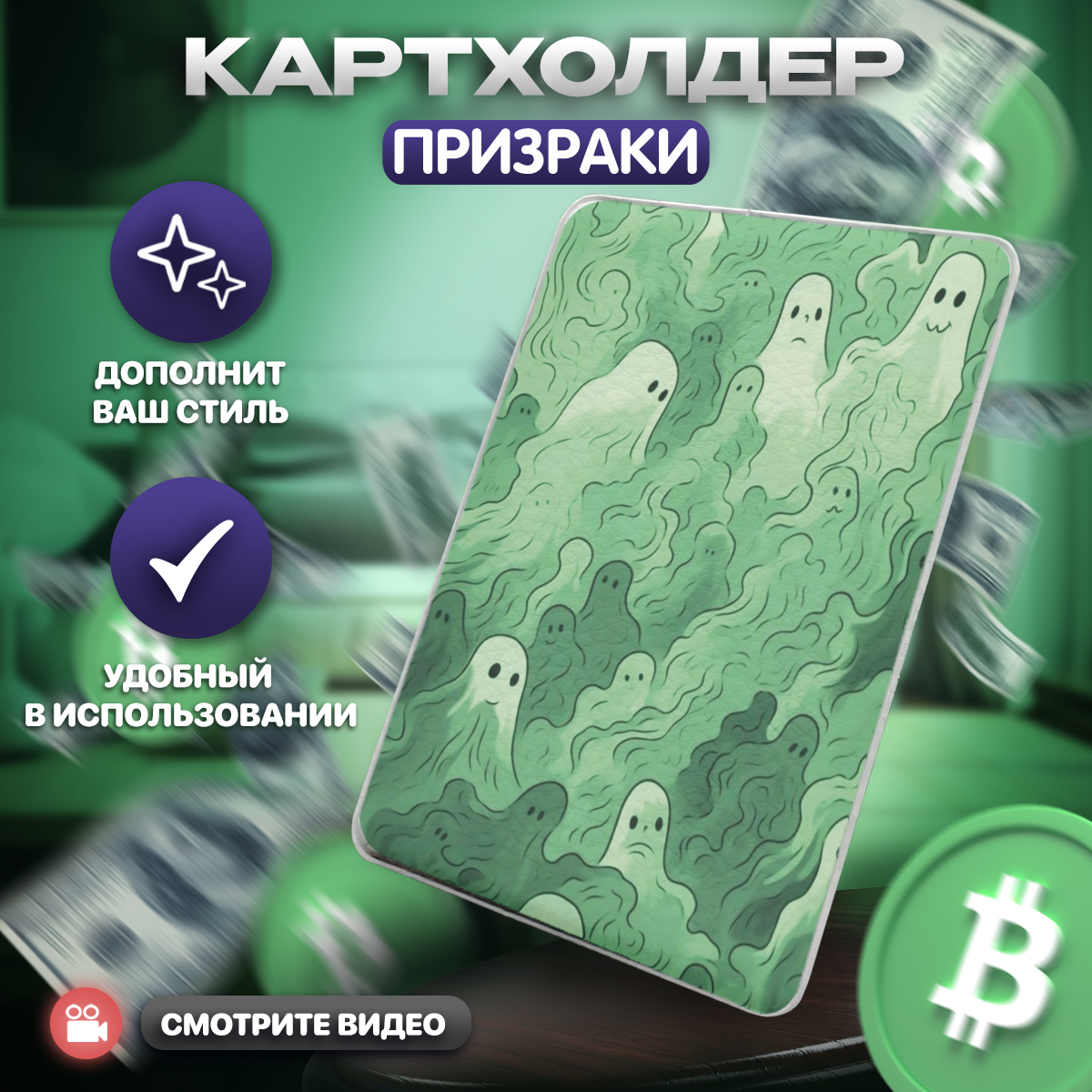 Визитница BELOUSOV, черный, зеленый, белый интересное: