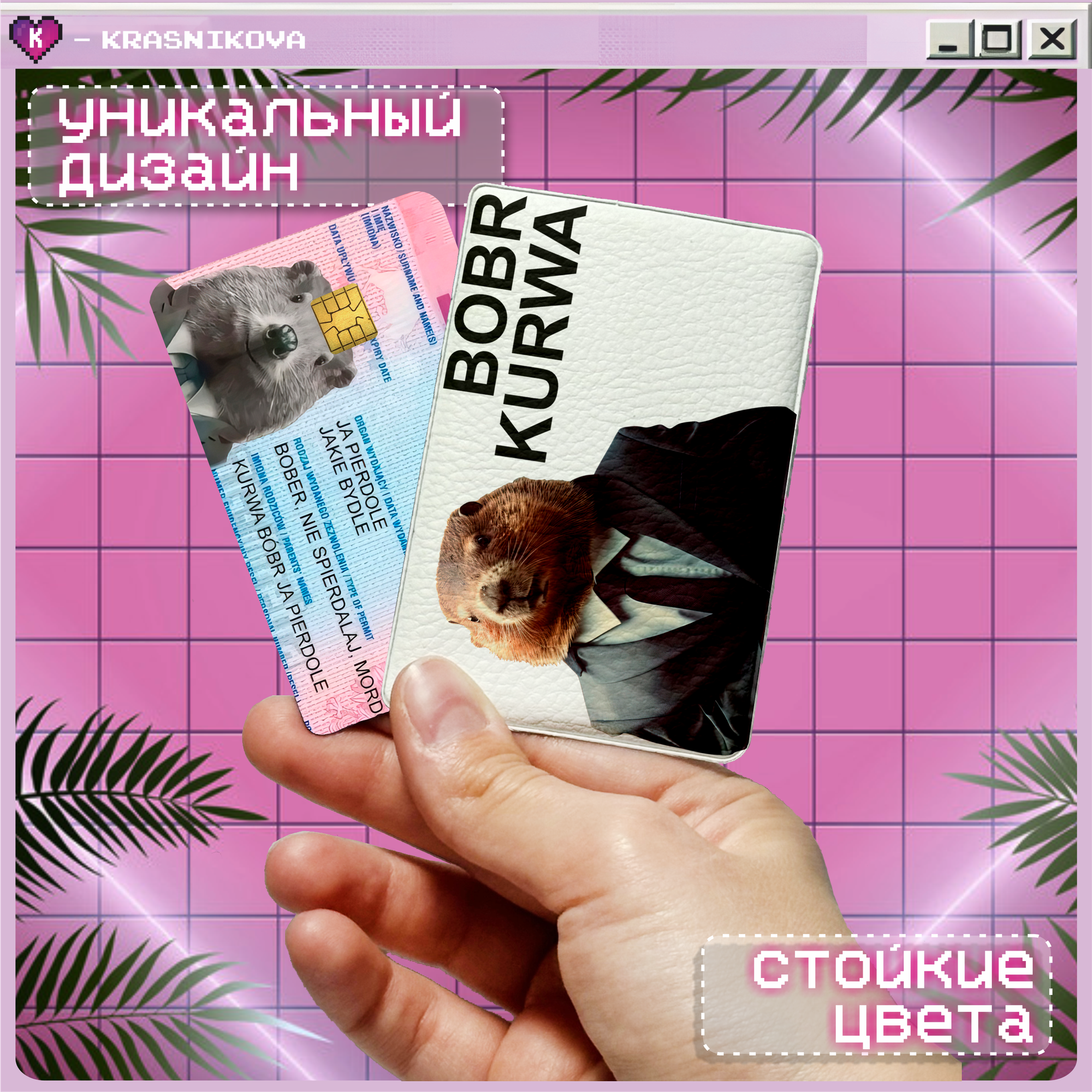 Картхолдер KRASNIKOVA, розовый, голубой, белый